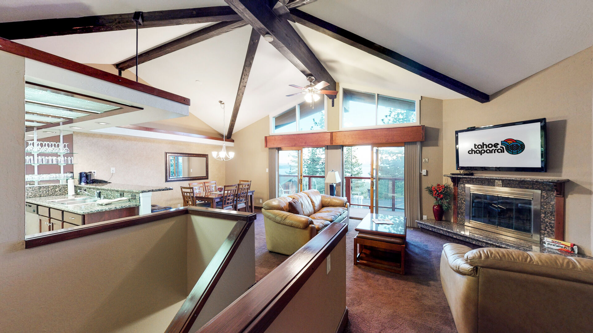 Enjoy the gorgeous panoramic views of Lake Tahoe from your private retreat at Tahoe Chaparral. Two-story timeshare accommodations feature a queen bed in the master bedroom, two twin beds in the guest bedroom, a sleeper sofa in the living area, washer and dryer, and a fully equipped kitchen. The resort does not offer any on-site amenities, but the natural playground at Lake Tahoe features skiing, snowboarding, sledding, boating, swimming, fishing, and more.