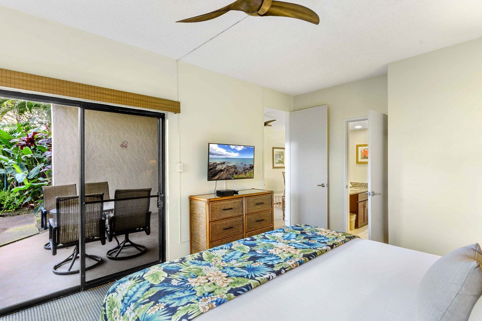 This oceanfront resort is composed of twenty-eight two-bedroom, two-bathroom units. Each unit sleeps six and features a king bed in the master bedroom, two twin beds in the guest bedroom, a queen sleeper sofa in the living area, a fully equipped kitchen, and private lanai. Natural woods, subdued tropical tones and Hawaiian prints make lounging in your room every bit as relaxing as lounging on the beach!