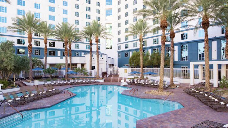 Step out the door of your Hilton Grand Vacations timeshare suite at the Las Vegas Hilton and immerse yourself in the lights and life of Vegas. Situated behind the Las Vegas Hilton hotel and casino, the Hilton Grand Vacations on Paradise is steps from all the dazzling entertainment, scrumptious delicacies, and gaming Vegas has to offer.