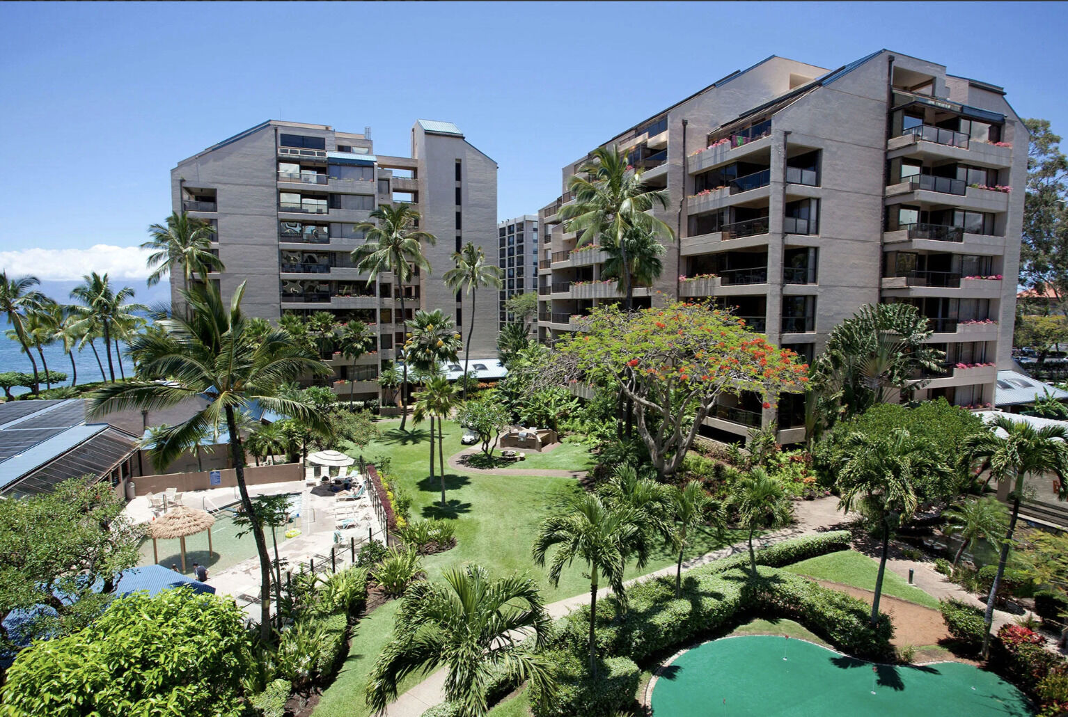 Midway between the world famous Kaanapali and Kapalua beaches lies the Sands of Kahana Vacation Club. The perfect laid-back retreat, this resort is equipped with everything you need to experience a true picture-perfect vacation. Spend mornings walking on the beautiful sandy beach just steps from the resort. Enjoy time alone with a good book by the pool, or head over to the children's pool with the kids. Tennis enthusiasts can play morning, noon, and night on any of the three lighted tennis courts, and don't forget your workout regime in the fitness center.Scattered around the resort are barbecue grills, a perfect place to hang out, cook dinner, and get to know other guests. Also on-site is the Kahana Sands Restaurant where you can savor a delicious meal all while enjoying spectacular views of the Pacific Ocean.