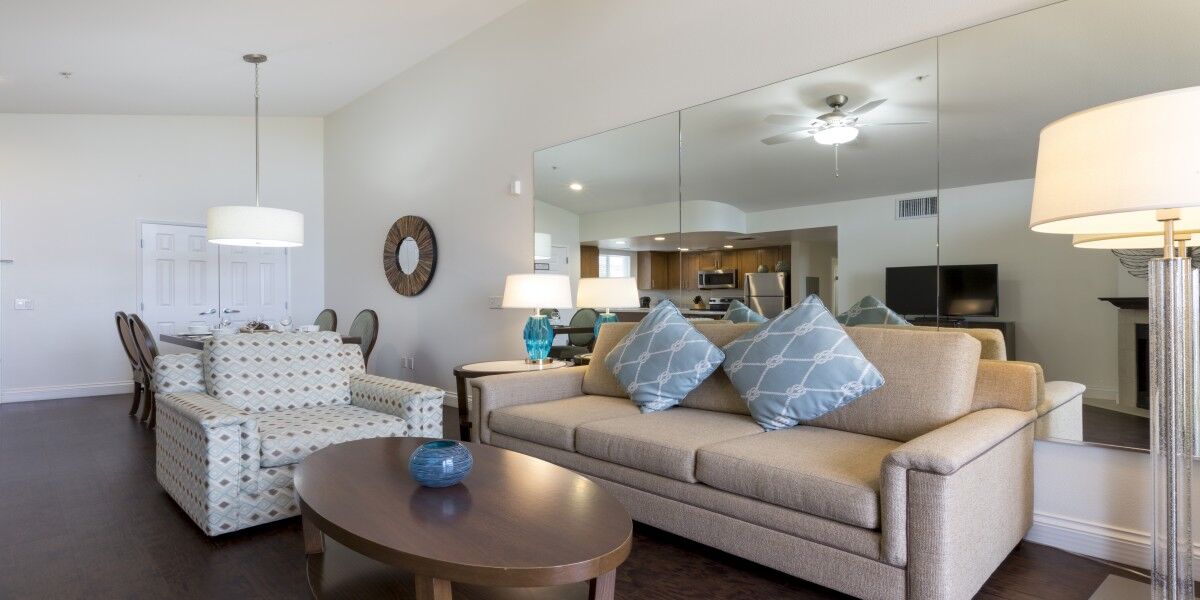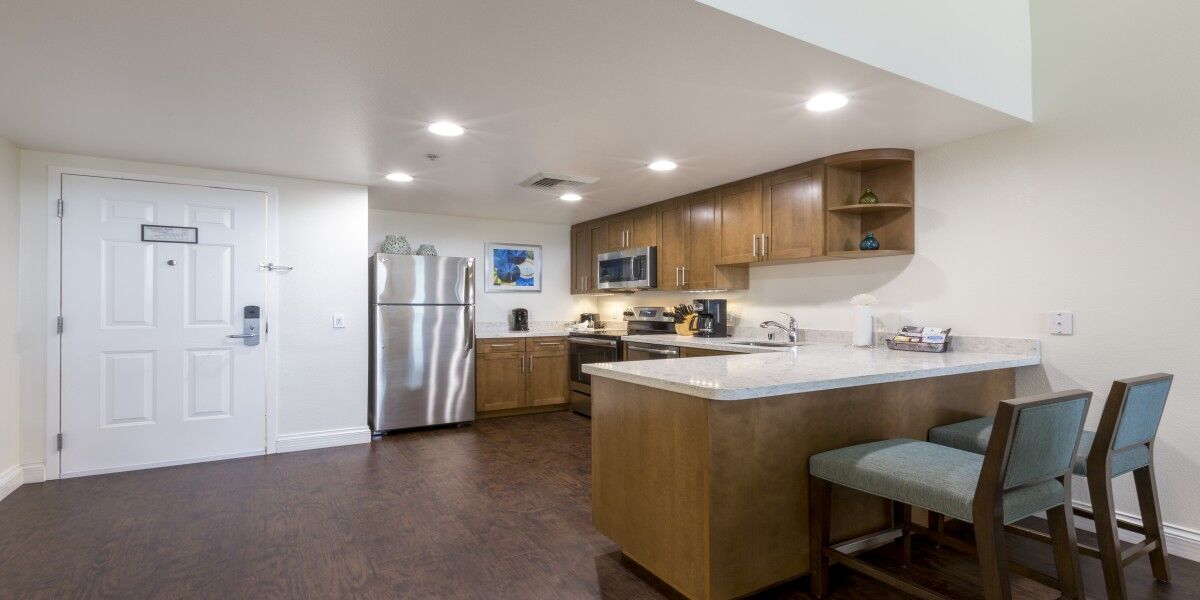 The villas at Grand Pacific Palisades Resort range from one to three bedrooms to comfortably accommodate groups of three to nine guests. Villas boast contemporary decor in line with the sophisticated style of Carlsbad while also offering guests the familiar features of home, like full kitchens and entertainment centers. Most units also include a fireplace and breathtaking views of the surrounding Flower Fields. Complimentary Wi-Fi is available to all guests.