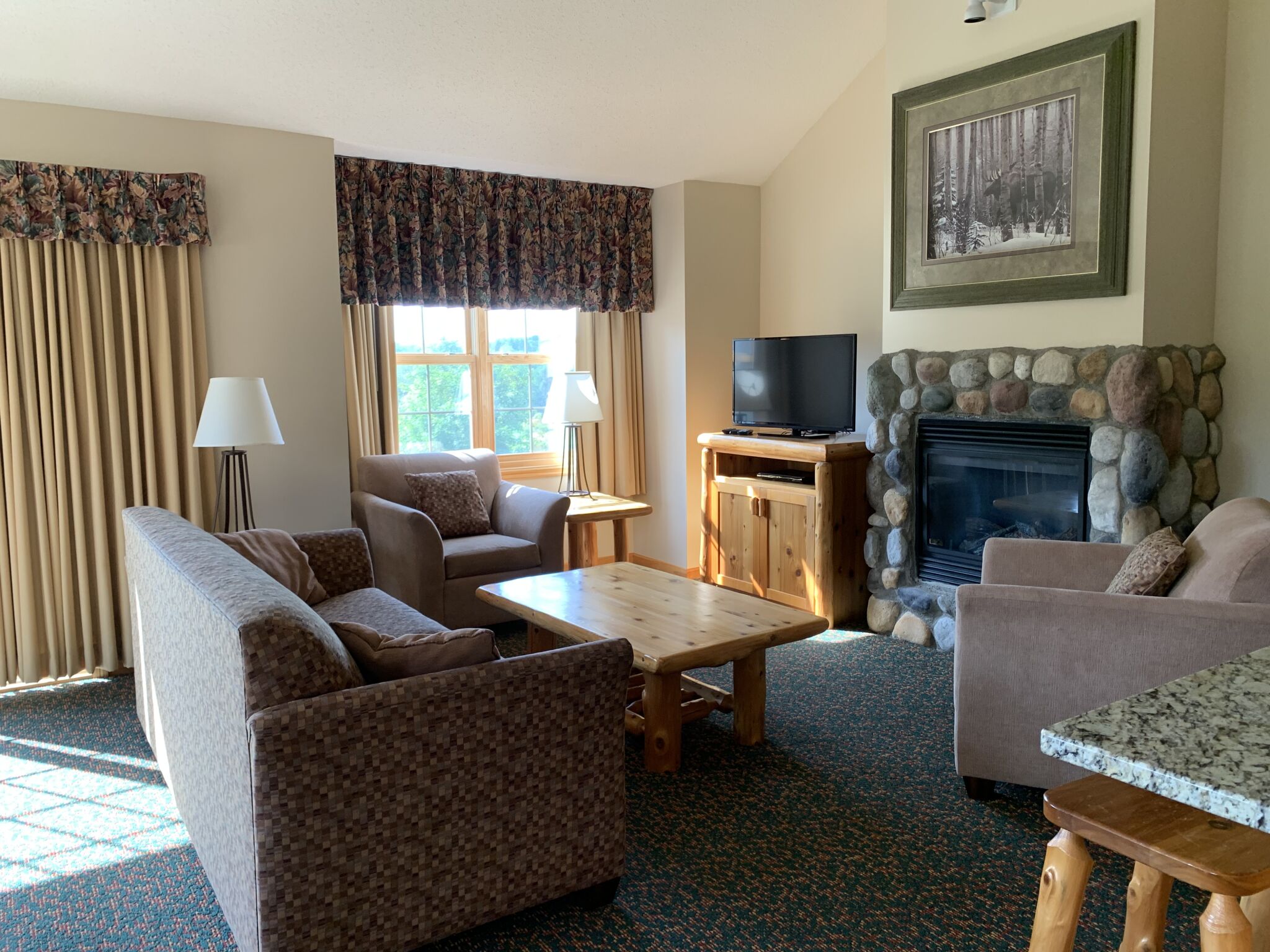 Whitebirch Estates - 2 Bedroom cabin. This beautiful golf course development is located on the 18th fairway of the Whitebirch Championship Golf Course and offers 2-bedroom units. All units feature a gas fireplace, full kitchen, two bedrooms, two baths, patios or decks, gas grills, washer & dryer and a host of delightful amenities to make you feel right at home.