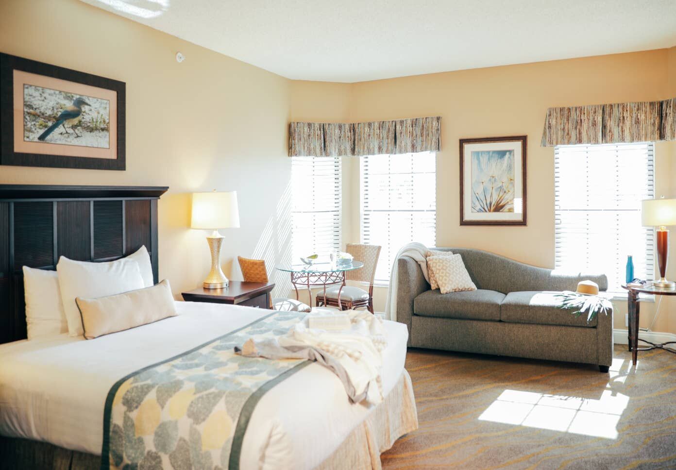 The spacious air-conditioned villas at the Orange Lake Resort - East Village are spacious and comfortable, the perfect retreat after a long day of activity. These colorful and airy villas feature amenities such as full or partial kitchens, a dining room and living room area, and a satellite TV with DVD player. Every villa is also furnished with a patio or balcony, many of which overlook the golf course. The villas range in size, from studios to three-bedroom units, and can sleep two to twelve guests depending on which configuration you opt for.