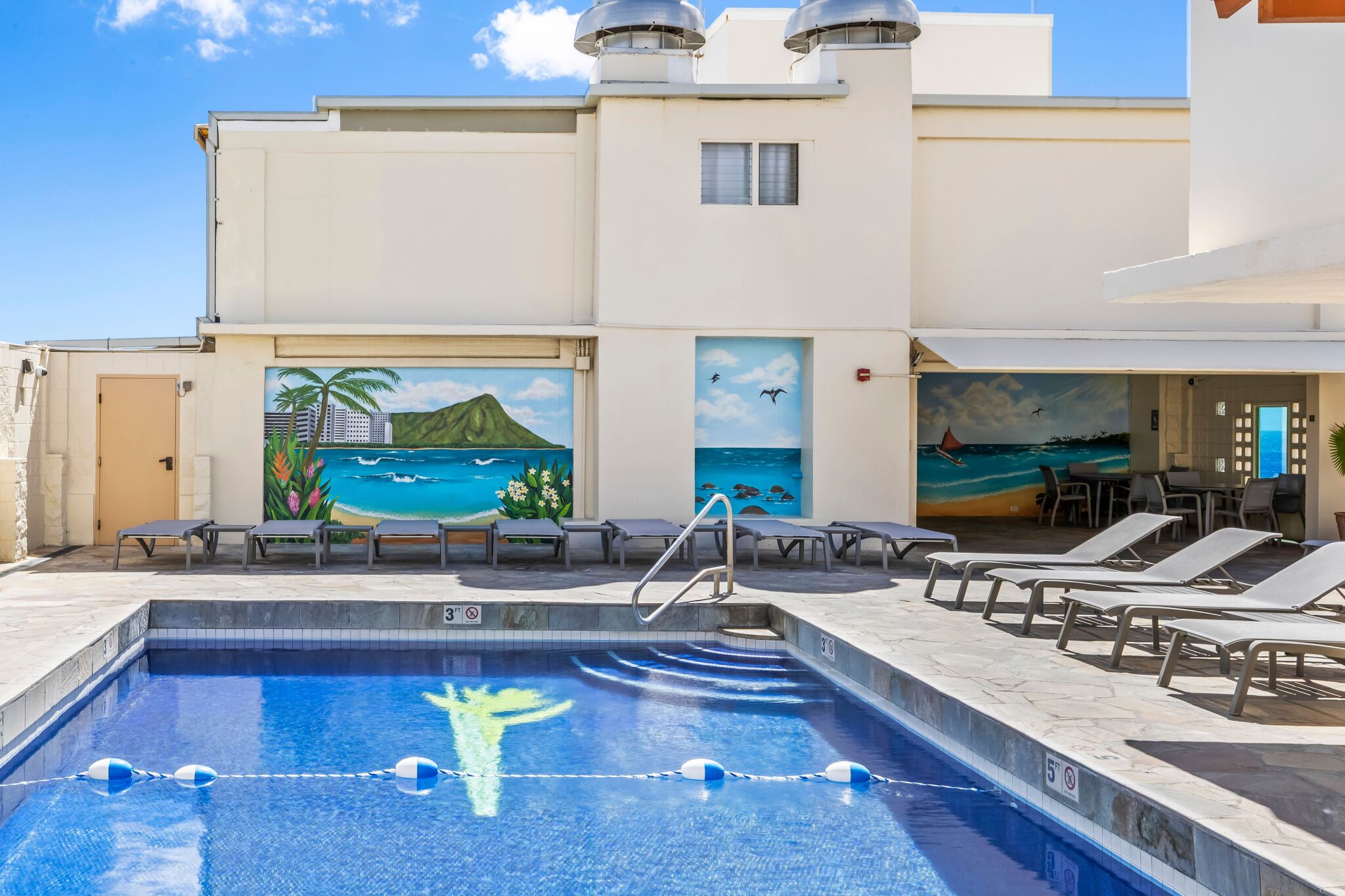 Located in the heart of Waikīkī, Imperial Hawaii Vacation Club delivers a truly local experience rooted in the spirit of aloha and ‘ohana (family), with personalized service and classic Hawaiian charm. Timeshare owners and exchange guests have exclusive access to the 26th Floor Owners’ Lounge with panoramic ocean views, multiple lounge areas with lanais, massage chairs, and complimentary morning coffee. View the lounge and learn more about the discounts and perks you can get from joining The Imperial Hawaii Vacation Club. Bask in sunshine at the rooftop pool and sundeck, offering sweeping views of the ocean, lush mountains, and the Waikīkī skyline. Guests can relax in outdoor hot tubs, unwind in the sauna, or stay active in the fitness center.