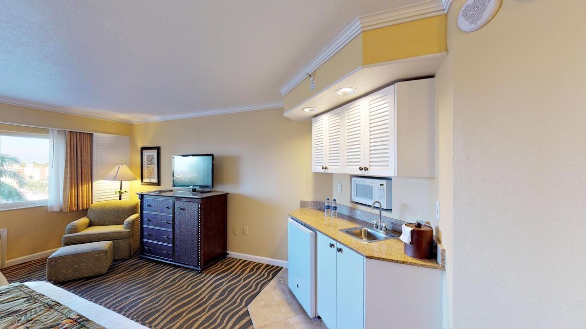Studio, one-bedroom and two-bedroom units are furnished with a contemporary style, the breezy ambiance fitting for this Gulf-side retreat. Kitchenettes include the essentials - a microwave and mini-fridge - and open living areas make "just hanging out" feel natural, and of course, ultraplush beds set the standard in comfort.