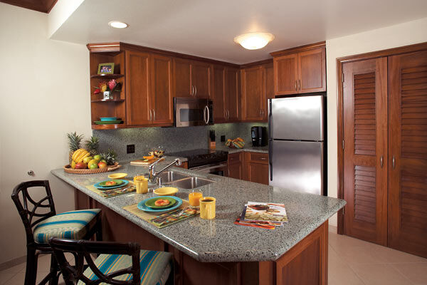 The Lahaina Tower at Marriott's Maui Ocean Club features spacious one, two, and three-bedroom suites designed with contemporary Hawaiian elegance. Each unit offers a fully equipped kitchenette or kitchen with granite countertops, and private lanais showcasing spectacular ocean, island and garden views. Villas also include roomy living and dining areas to offer additional space to unwind. Modern amenities include plush bedding with premium linens, oversized soaking tubs in master bathrooms, flat-screen TVs with premium cable, complimentary high-speed Wi-Fi, and in-suite washers and dryers.