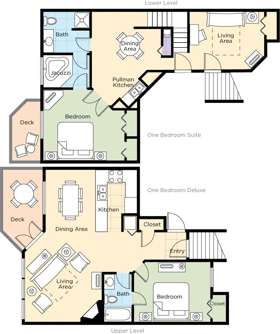 Accommodations at Fairfield Mountains include one- and two-bedroom suites, each designed with comfort and convenience in mind. Units feature full kitchens, separate living and dining areas, washer/dryer, and private balconies or patios—many with views of the golf course, lake, or wooded hills. Fireplaces, whirlpool tubs, and cable TV offer added comfort, making these mountain retreats feel like a true home away from home.