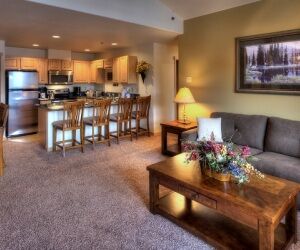 The one, two and three-bedroom suites at Grand Timber Lodge come outfitted with fully equipped kitchens, breakfast bar, dining area, private decks, fireplaces, whirlpool bathtubs, cable television with DVD player and in-suite washer and dryer. Studios unit are available for those just looking for the basics, offering a TV and DVD player, kitchenette and full bathroom.