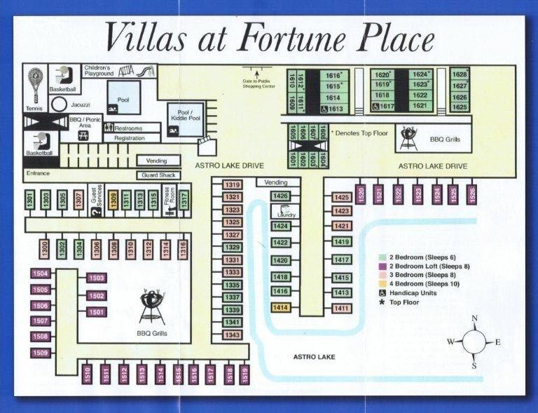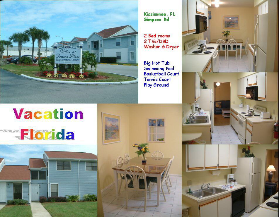 With villas ranging in size from two-bedrooms to four-bedrooms, Villas at Fortune Place is perfect for even the largest groups experiencing Orlando together! All units are all professionally decorated in tasteful Florida style and feature a fully equipped kitchen including dishwasher, range, full-size refrigerator, microwave oven, coffee maker and toaster, in-suite washer/dryer, color TV and weekly maid service.