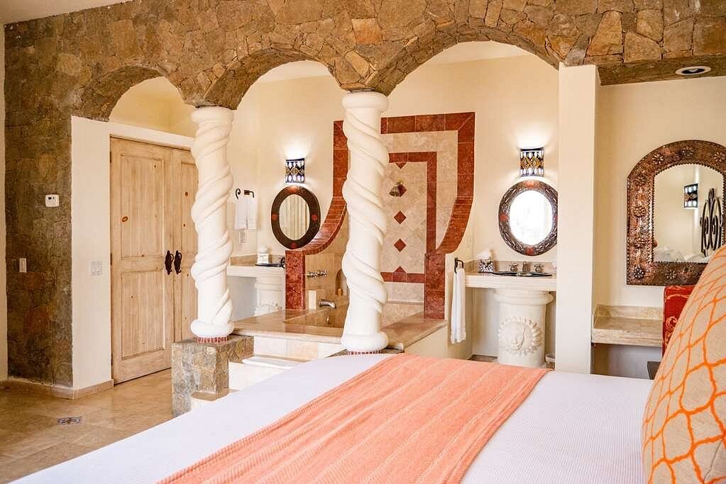 Accommodations range from comfortable villas to expansive multi-bedroom penthouses, offering flexibility for couples, friends, or large groups. Many units come with full or kitchenette-style kitchens, private patios or balconies, plush bedding, and amenities like flat-screen TVs and hot tubs in the master bathroom for an added touch of luxury. Whether you're looking for a cozy retreat or a roomy base to share, the units are designed to make you feel at home amid Baja’s dramatic scenery.