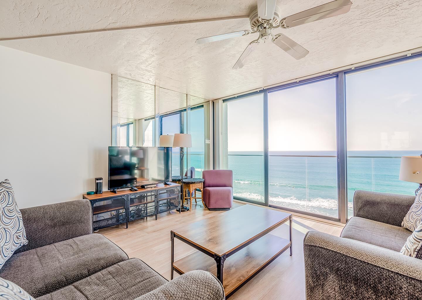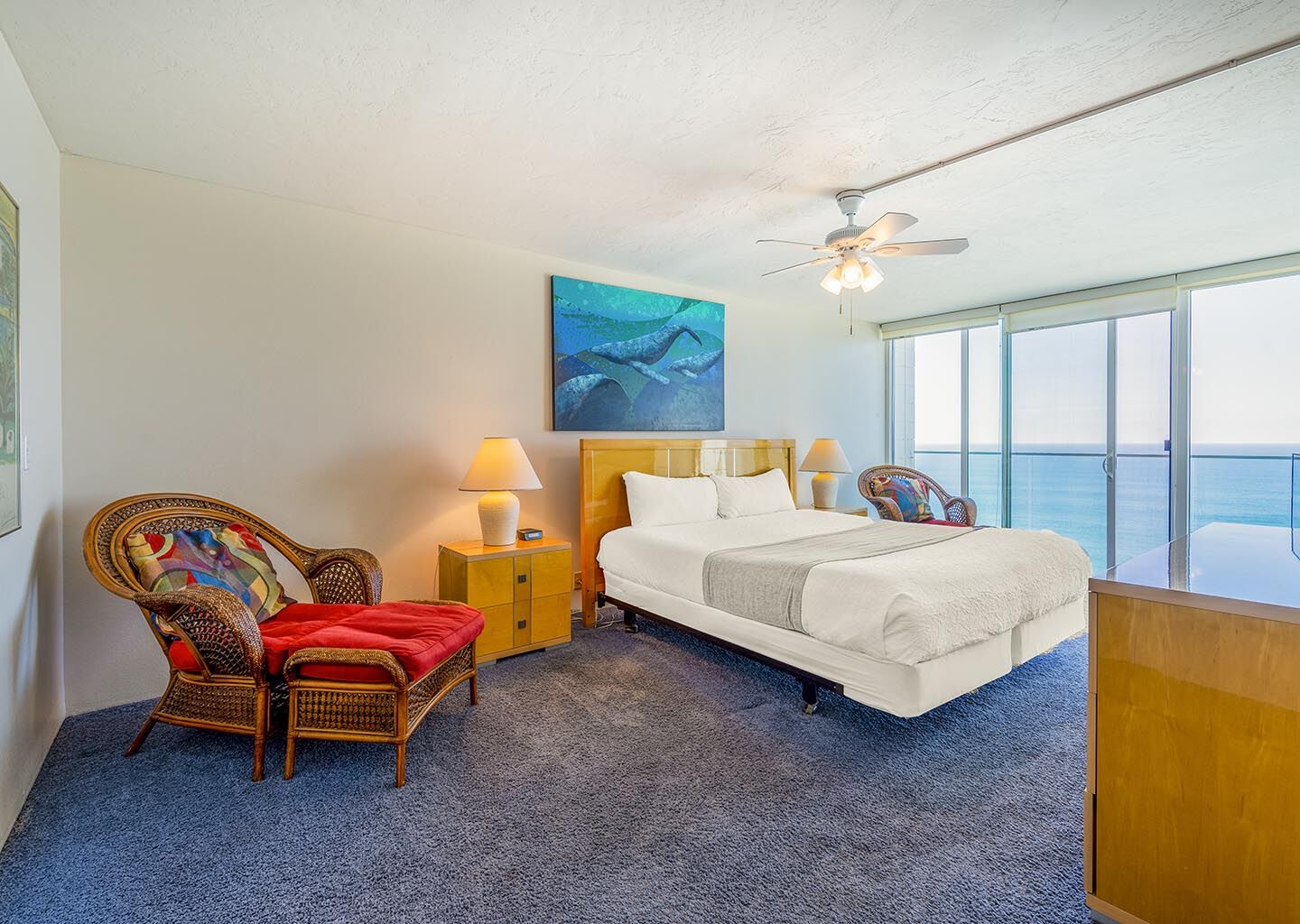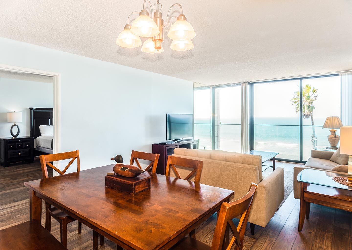 Capri by the Sea offers spacious, modern one and two-bedroom villas. Each villa features a full kitchen, roomy living and dining area, and double sliding oceanfront doors that give way to uninterrupted panoramic oceanfront views. A cable TV with a DVD player lets the entire family enjoy a movie together, and complimentary Wi-Fi keeps everyone connected!