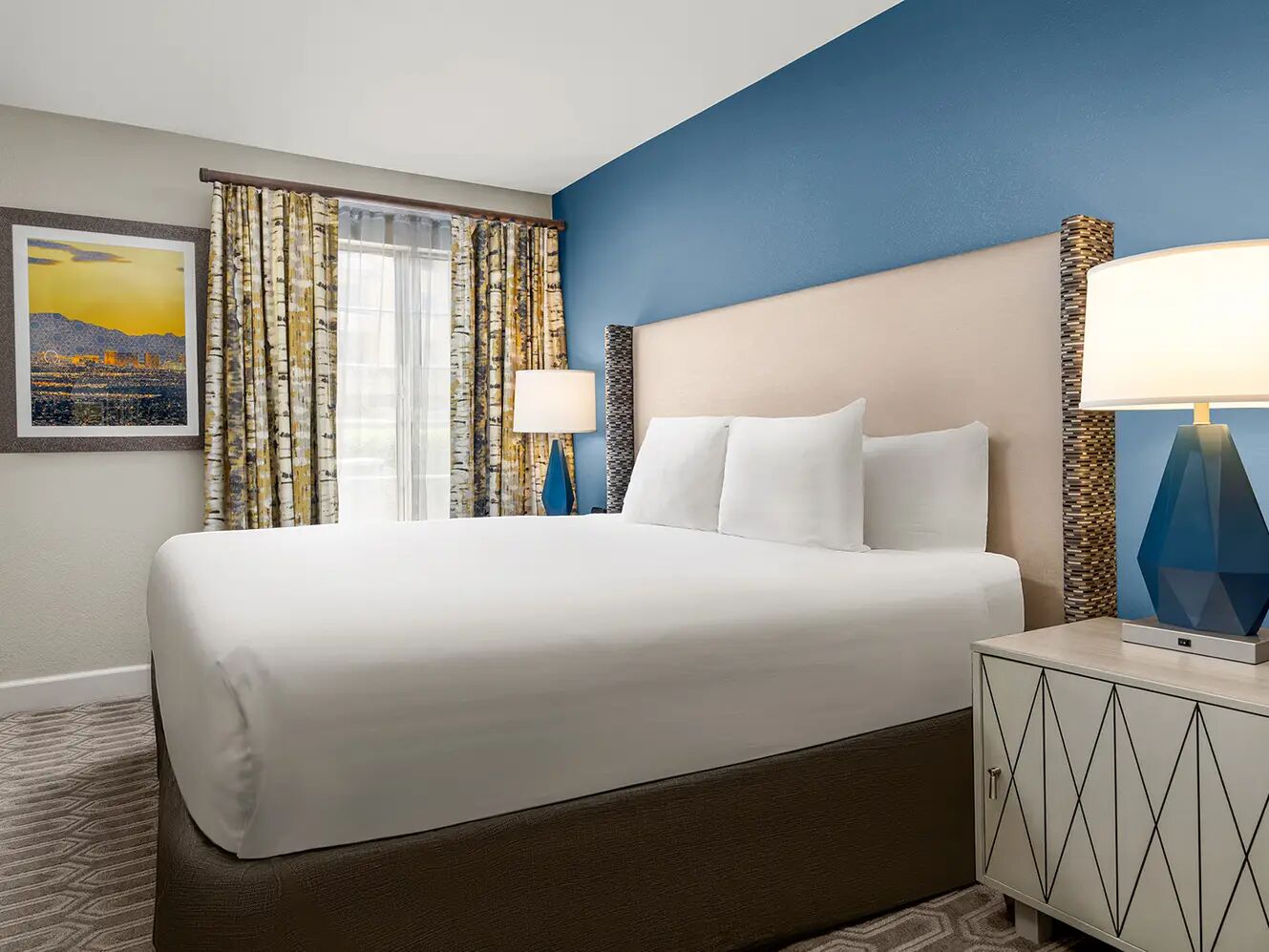 Holiday Inn Club Vacations at Desert Club Resort truly embodies the spirit of a desert oasis with a tan stucco facade and plenty of lush palm trees! Located just a block from the Strip, Desert Club Resorts offers the best of both worlds - there's quick access to world-class entertainment while also allowing for a quieter, less crowded resort experience. The property includes five swimming pool, five whirlpool spas, barbecue facilities, fitness center, game room, and volleyball courts. A concierge associate, activities associates, 24-hour front desk, business center and convenience store/gift shop are on-site.