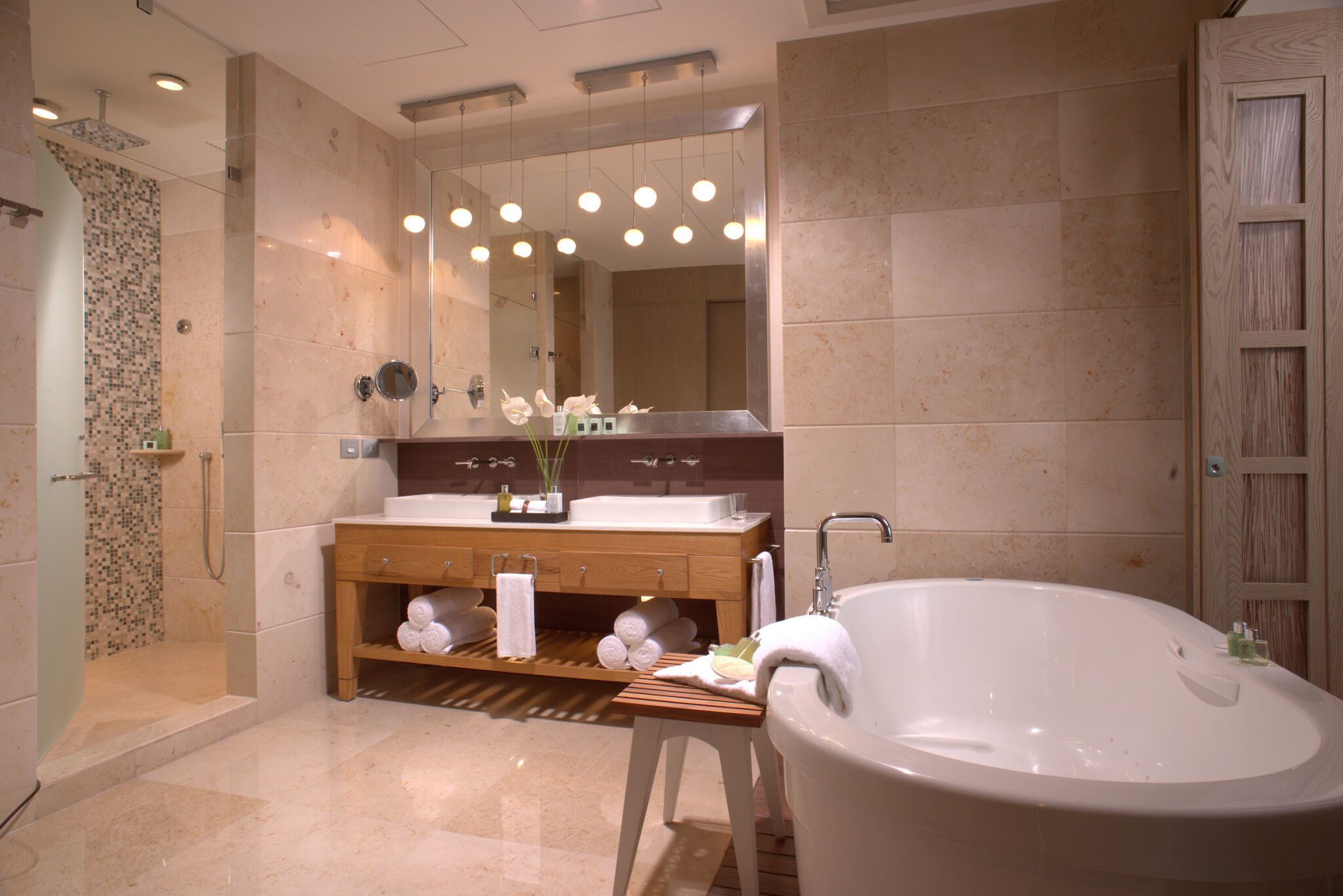 The two and three-bedroom villas come with an elegant living room, dining area, jetted tubs and massage tables in the bathrooms, a huge balcony with plunge pool and complete kitchen. Top quality interior design and furnishings ensure a private and relaxing time. Enjoy unobstructed ocean, beach, city and grounds views from the balcony - an ocean view is always guaranteed. You can even book a private chef to prepare your dinner, or a masseuse for an in-room massage.