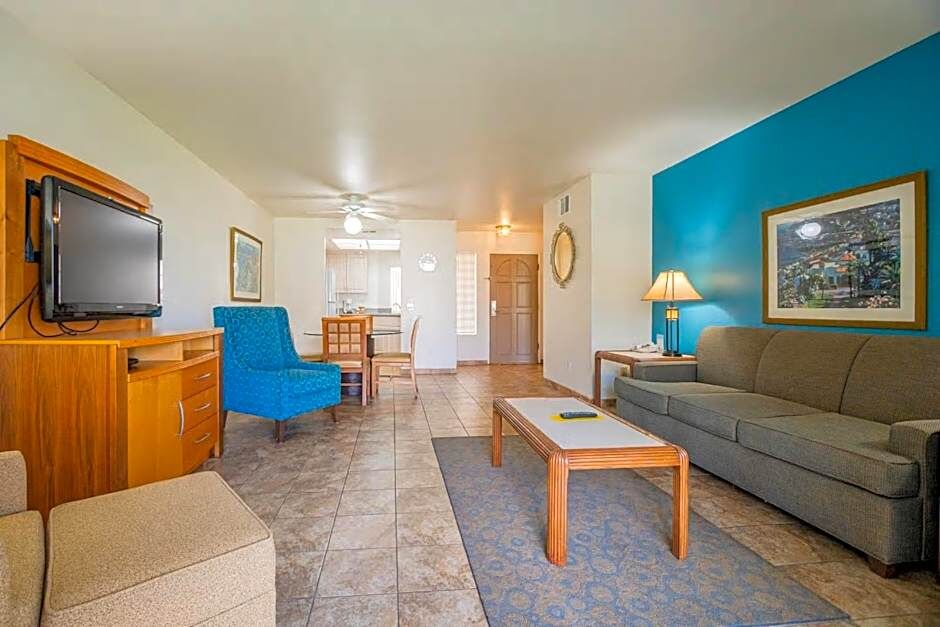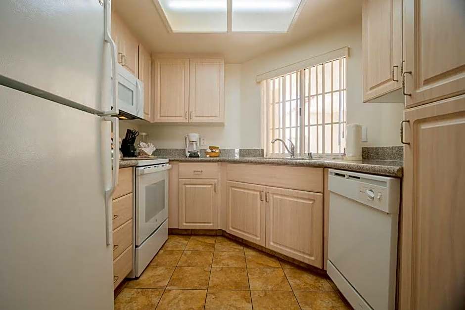 At Desert Breezes, you can choose between a studio, one or two-bedroom unit. Studios offer a partial kitchen and enough space to comfortably sleep two. The one-bedroom units feature kitchenettes and are perfect for four guests.Two-bedroom suites are the most spacious and come equipped with a full kitchen and fireplace for those chilly nights. No matter what size you choose, all rooms include a patio or balcony, air- conditioning, LCD TV with premium channels, DVD player and bathrobes.