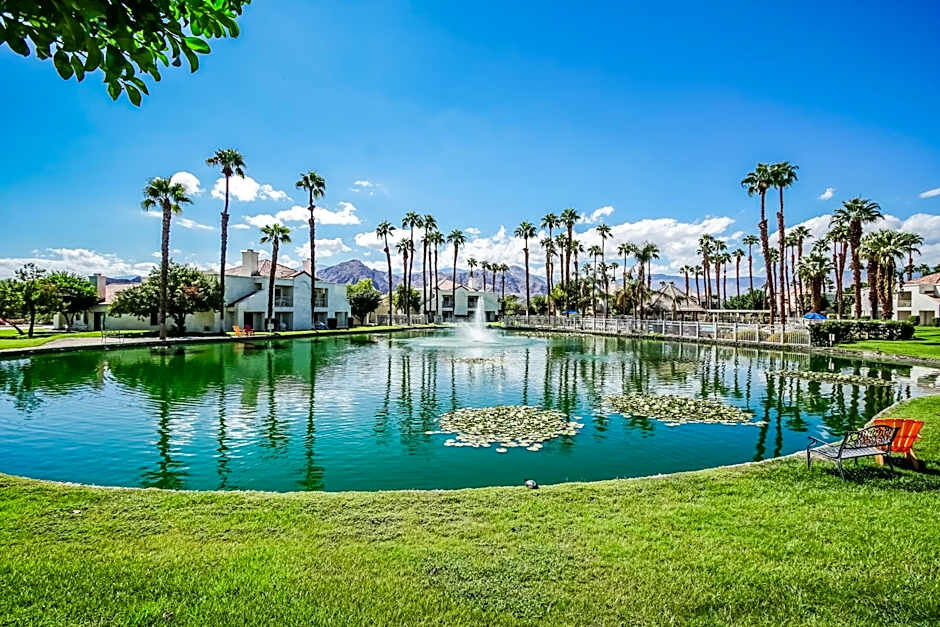 An oasis at the base of the Santa Rosa Mountains, Desert Breezes Resort is the perfect haven for your Palm Desert retreat. Set among lush green lawns, colorful gardens, and a small lake, guests will be every bit as inspired by the grounds as they are the striking mountain backdrop. Tennis buffs will love the five courts available onsite, three of which are lighted. A fitness center outfitted with exercise equipment is also available for use. The resort boasts three pools and eleven whirlpool hot tubs - perfect for a swim or soak!