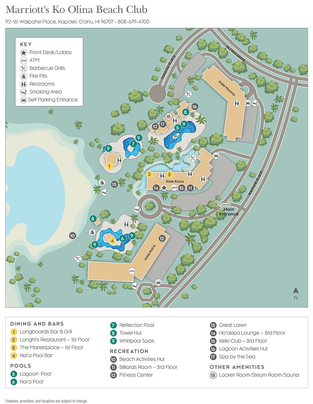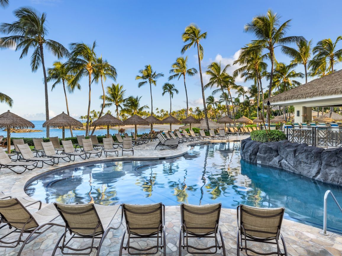 Marriott Ko Olina Beach Club is located on the stunning western shore of Oahu, offering a tropical paradise experience with breathtaking views and luxurious amenities. Upon arrival, guests are greeted by beautiful waterfalls and fountains, setting the tone for the resort's serene atmosphere. The property features seven pristine blue lagoons, lush palm trees, and vibrant native flora, creating a true tropical oasis. Enjoy an array of on-site amenities, including four swimming pools, the Nai’a Pool Bar, Longboards Bar and Grill, a fully equipped fitness center, The Marketplace convenience store, and a variety of daily activities. Marriott Ko Olina Beach Club is the perfect destination for those seeking a luxurious Hawaiian getaway with everything you need right at your fingertips.