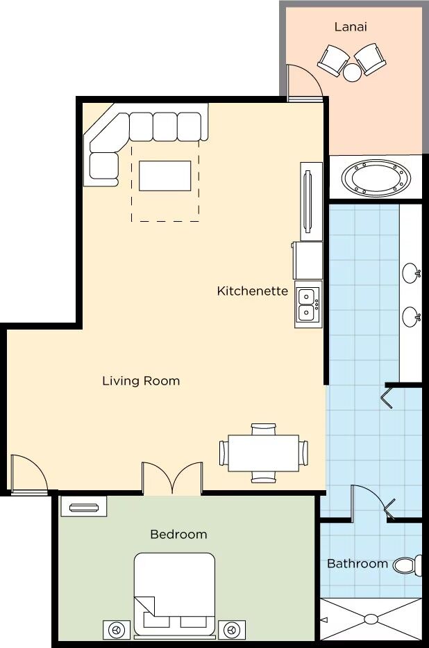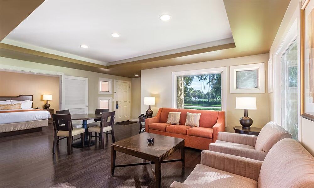 Orange Tree Golf Resort houses 160 beautifully-furnished, one-bedroom suites, each decked out with bright colors and modern decor. Each unit includes a partial kitchen, entertainment center with 37" plasma TV and stereo system, private lanai, two-person whirlpool bathtub, double vanity, iPod dock with alarm clock, Tempur-Pedic sleep systems and complimentary Wi-Fi.