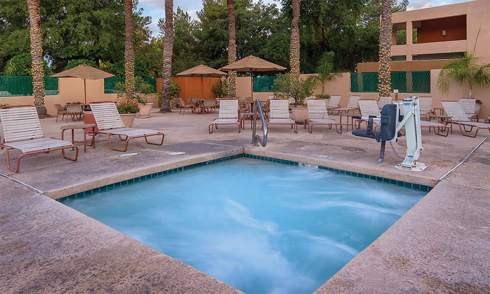 Located on 128 beautifully-landscaped acres, Orange Tree Golf Resort is one of Arizona's premiere golf destinations. Blending the intimate ambiance of a country club with the first class amenities of a fine golf resort, you're bound to find out why Orange Tree is your idyllic Scottsdale escape. Take advantage of the pool hidden amongst waterfalls, palms and gardens. The championship 18-hole golf course is fit for players of any level, while the John Jacobs Golf School lets everyone hone their skills. A fitness center and sports courts are always available for guest use, and a concierge service is on hand to help streamline your vacation. The Grove Grille & Lounge is the perfect place to enjoy either a casual meal or some drinks.