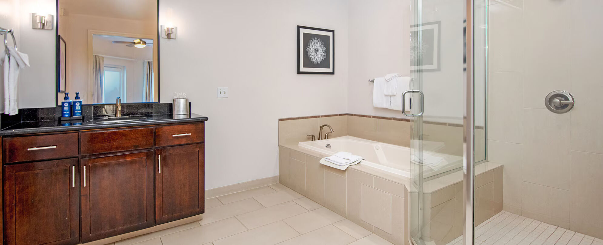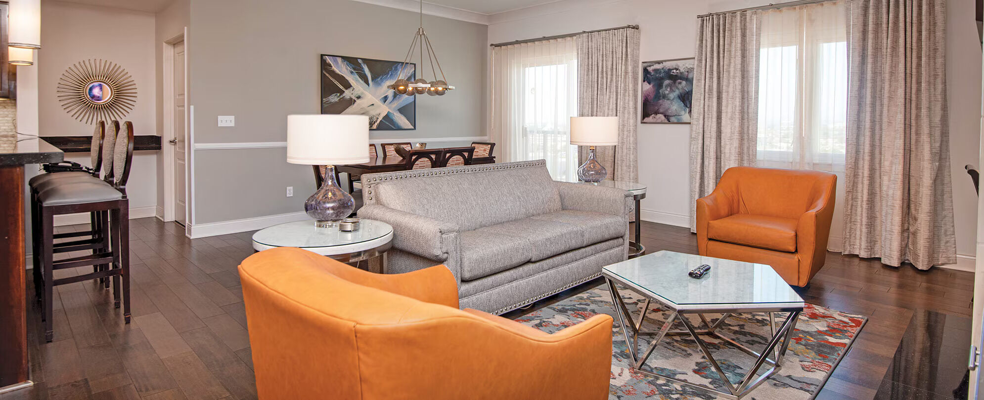 The resort consists of 253 luxury one, two and three-bedroom suites as well as twelve ultra- exclusive presidential suites. Each and every unit includes a full kitchen, cable TV with DVD player, stereo system, air-conditioning, in-room washer dryer, furnished balcony or terrace, Wi-Fi access and complimentary coffee. Rich, dark woods, modern detailing and marble trim lends a distinctly upscale feel to every unit.