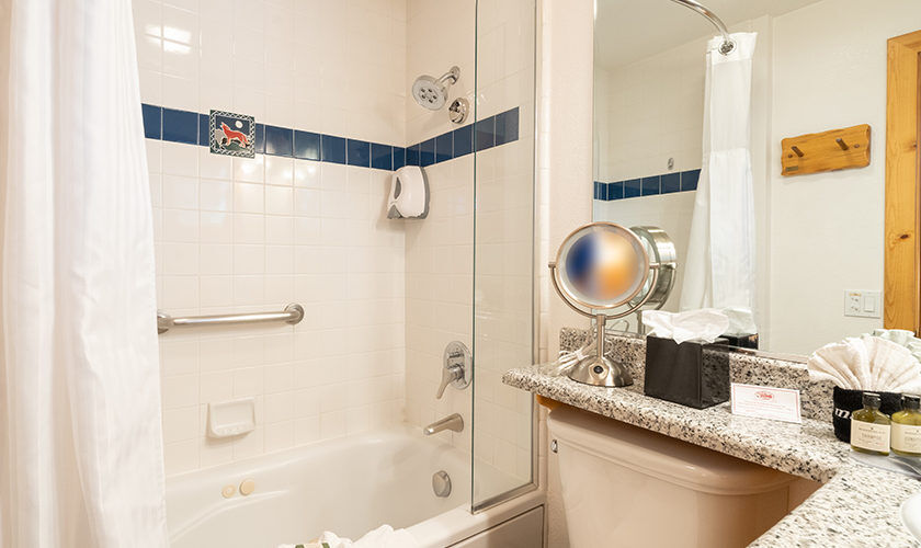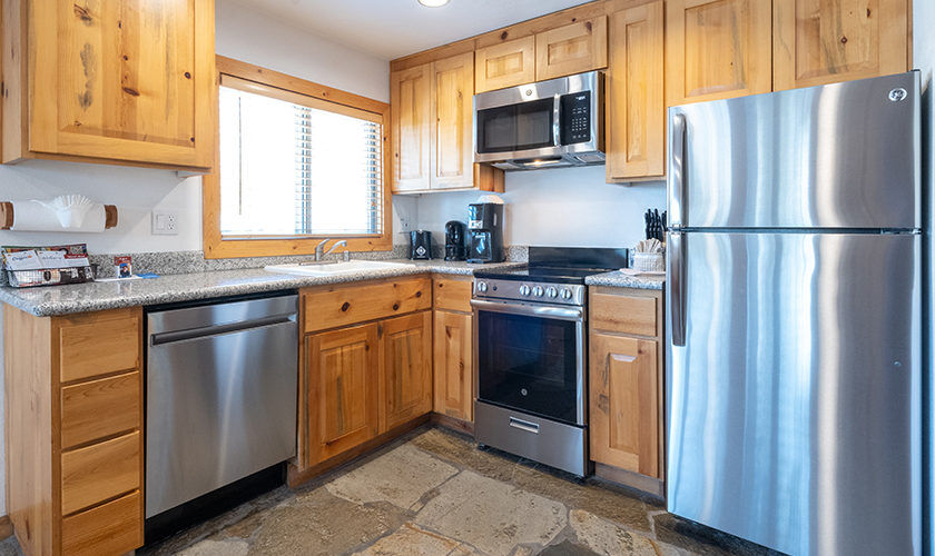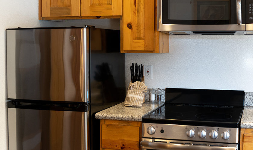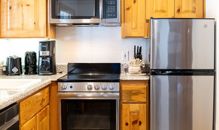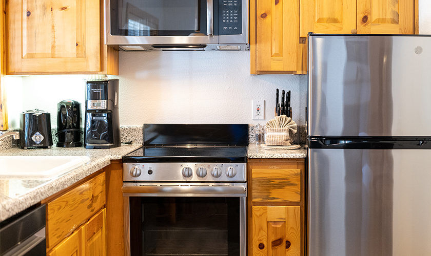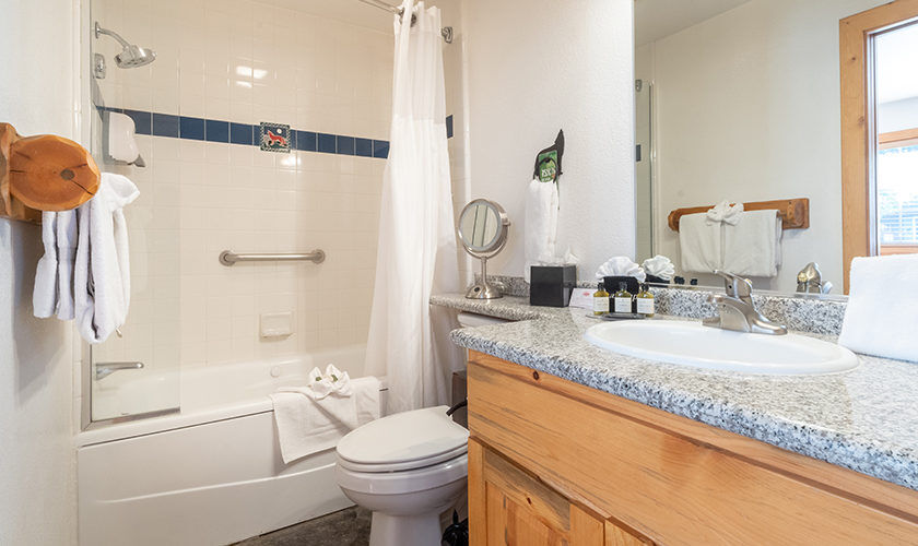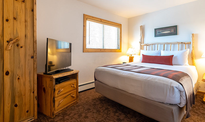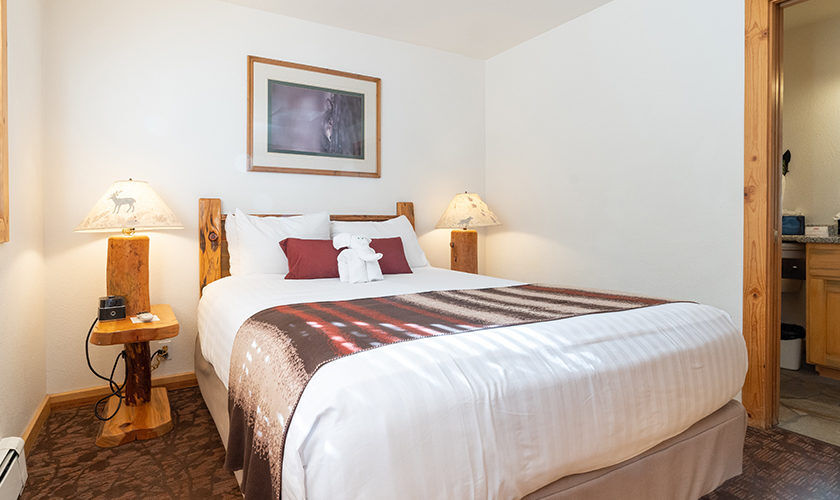 Red Wolf Lakeside Lodge offers studio, one and two-bedroom suites. Studio units sleep two and feature one bathroom, a queen Murphy bed, and kitchenette with dishwasher, microwave and refrigerator. One-bedroom units sleep four and feature one bathroom, a queen bed in the bedroom, a queen sleeper sofa in the living area and a kitchenette. Two-bedroom units sleep six and feature two bathrooms, a queen bed in both bedrooms and a full size kitchen. Of course, each room is decked out with warm woods and alpine theming to capture the Tahoe spirit.