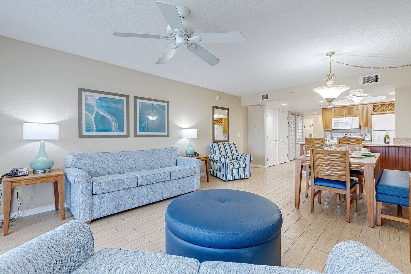 Each tastefully decorated two-bedroom, two-bathroom suite comes equipped with everything you need including a full kitchen, dining area, washer/dryer and private balcony offering beautiful partial ocean or oceanfront views. These units offer enough room for up to six guests, making it ideal for family trips or vacations with friends.