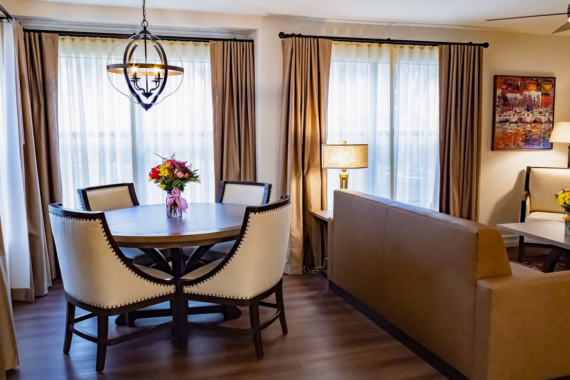 Spacious accommodations range from studios to one- and two-bedroom villas, each thoughtfully designed to feel like a home away from home. Villas include full kitchens or kitchenettes, separate living and dining areas, washer and dryer, multiple televisions, and private patios or balconies. Comfortable furnishings and generous layouts provide plenty of room to relax after a day exploring Las Vegas or enjoying the resort’s amenities.