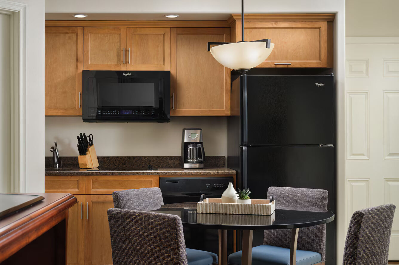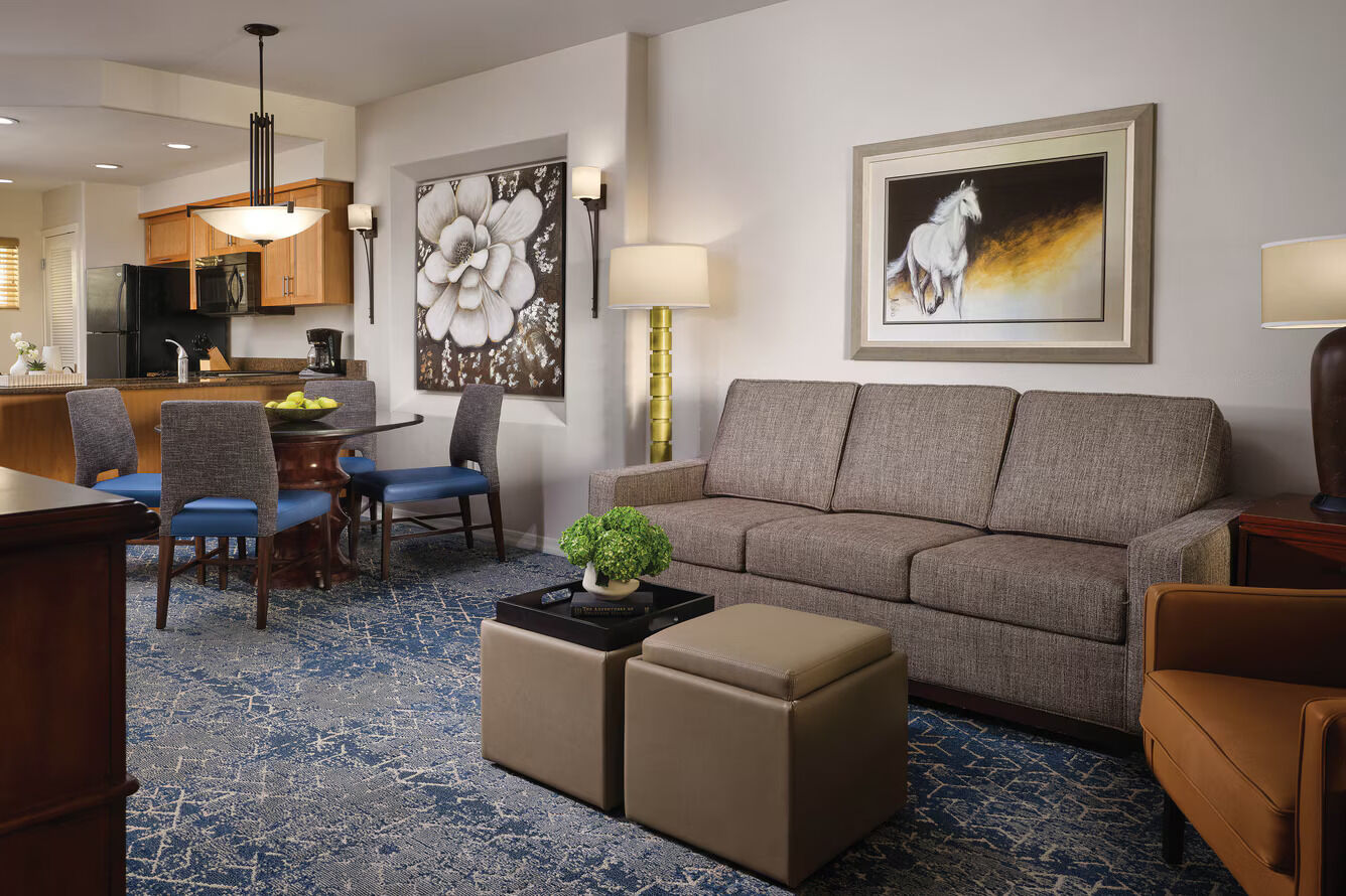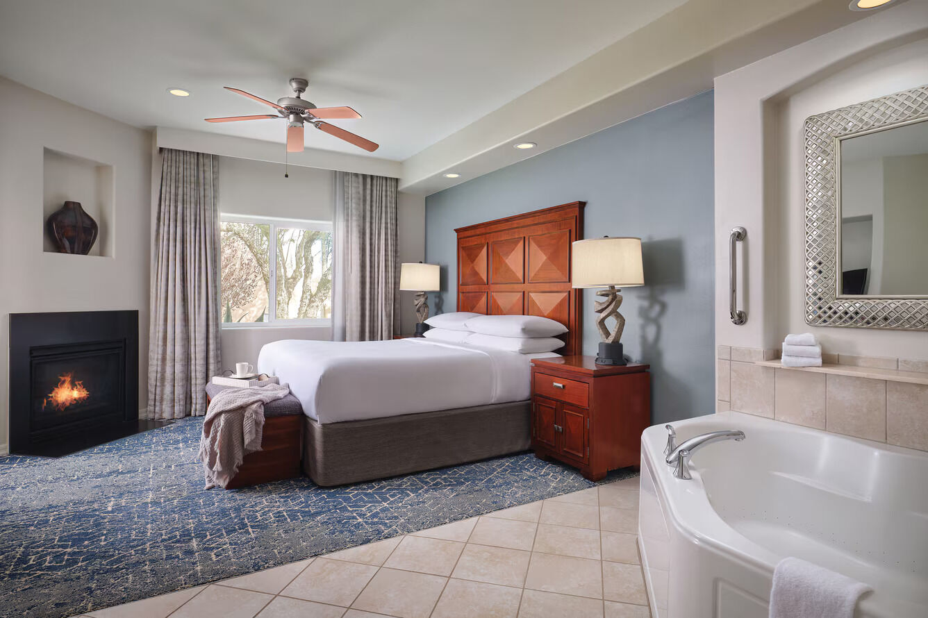 The one and two-bedroom villas at Sheraton Desert Oasis offer space, style and comfort. Luxurious touches likes fireplaces, decked out entertainment centers (flat-screen TV's and Bose stereos!) and marble detailing make every minute spent in the room a bit more enjoyable. Full kitchens and dining areas allow you and your group to enjoy classic cooking right in the room. Enjoy Arizona sunsets from your furnished balcony or terrace, or unwind after a long day in the whirlpool bathtub.