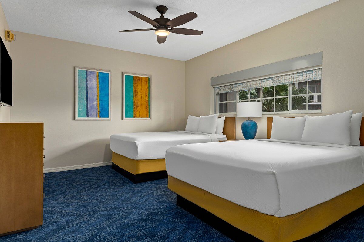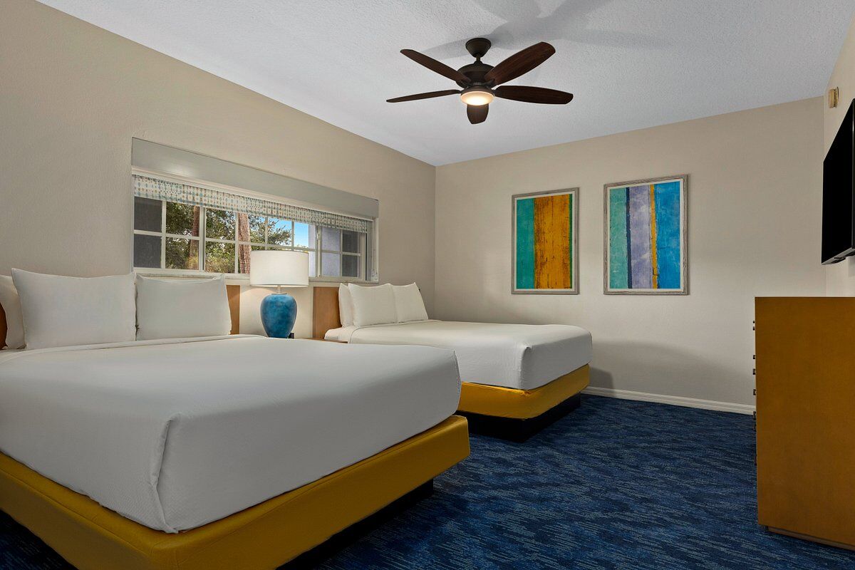Spacious one- and two-bedroom suites provide comfortable, condo-style accommodations ideal for families or longer stays. Each suite includes a fully equipped kitchen, separate living and dining areas, washer and dryer, multiple televisions, and a private balcony or patio. Thoughtful layouts and home-like amenities allow guests to relax and recharge after busy days exploring Central Florida.