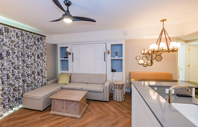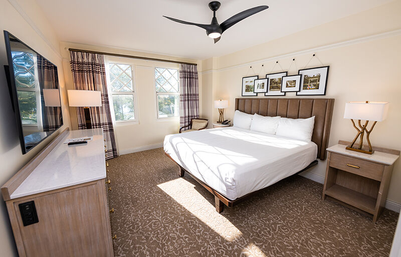 Victorian-inspired furniture, soft colors, and elegant floral patterns provide a welcoming, relaxing atmosphere in your one-bedroom, two-bedroom or three- bedroom villa. All villas come complete with king-size bed and whirlpool tub in the master suite, queen sleeper sofa in the living area, fully-equipped kitchen, TV and DVD player, in-suite washer/dryer, and private porch or balcony. Two bedroom villas feature a second bedroom with two queen beds or one queen bed and a double-size sleeper sofa, and private bathroom. Three-bedroom grand villas feature two additional bedrooms, each with two queen beds and private bathroom.