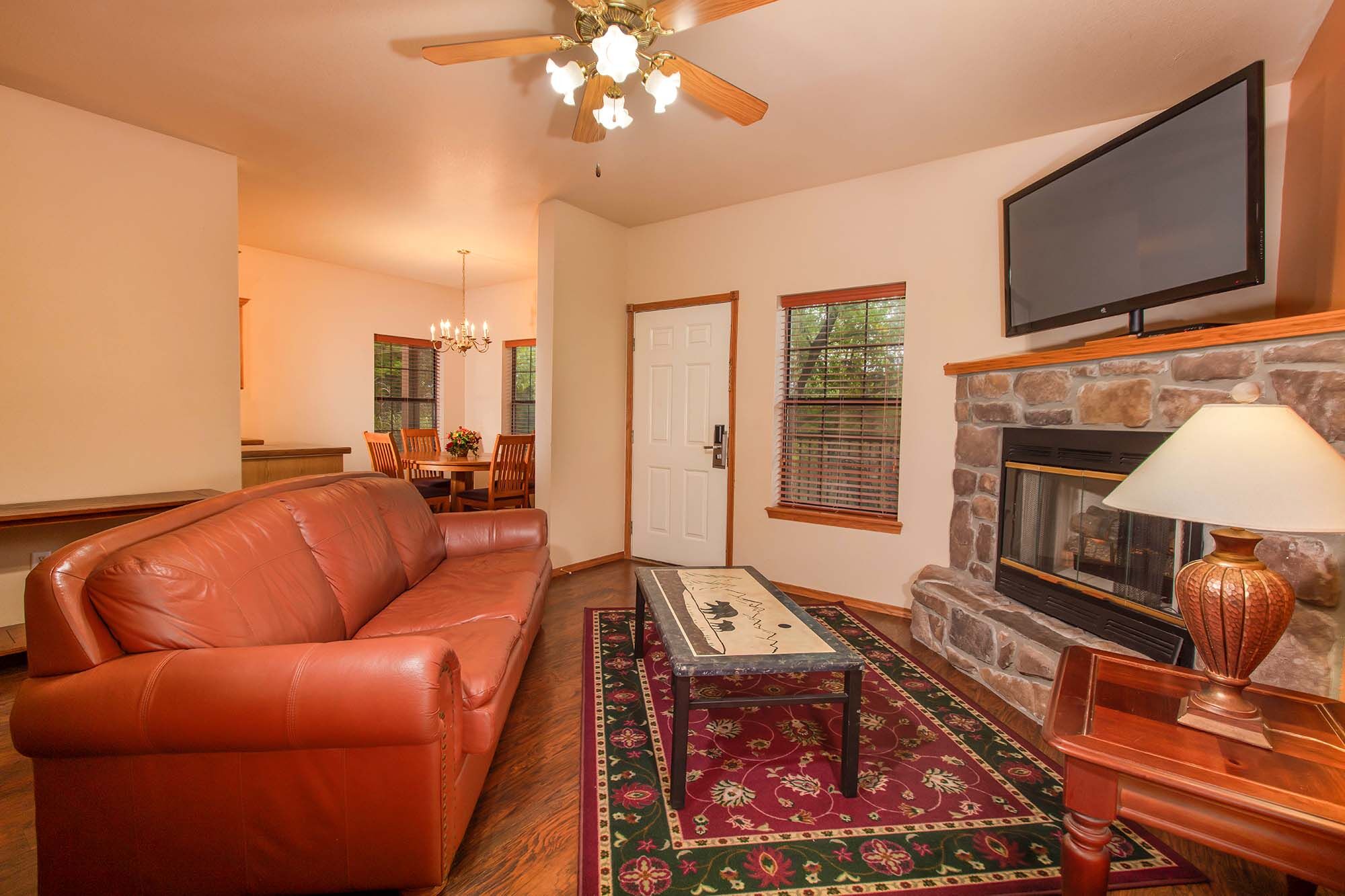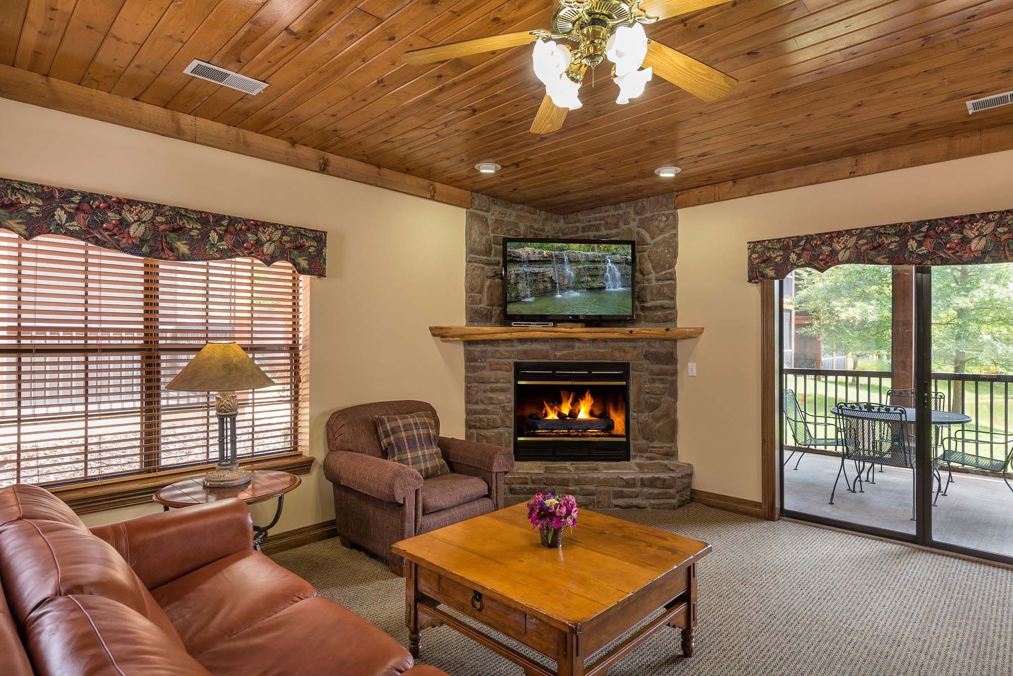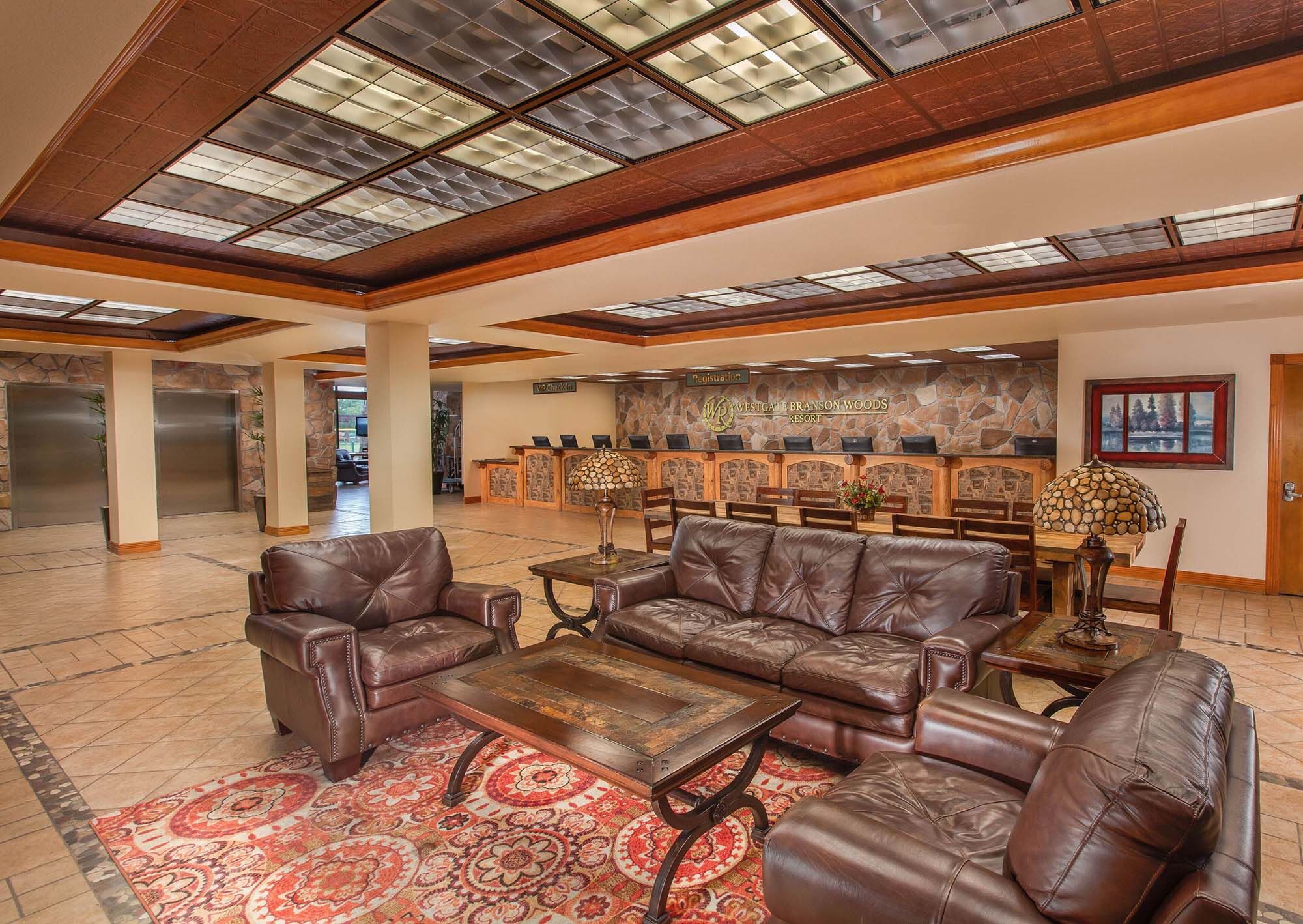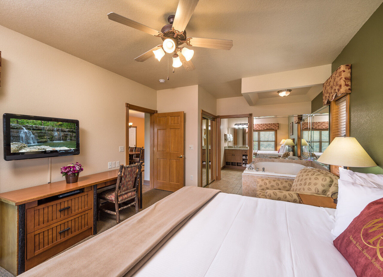 Located on 145 beautiful wooded acres, Westgate Branson Woods Resort features all the amenities you expect from a full-service resort. Guests enjoy two outdoor pools, an indoor pool, exercise facility, private hiking trails, shuffleboard courts, horseshoe pits, sand volleyball court, lighted playground, campfire area, clubhouse, bike rentals, free on-site entertainment, concierge, shuttle service and breakfast buffet. Meeting facilities are also available. Our comfortable one- and two-bedroom suites feature fully equipped kitchens, dining rooms, spacious living rooms with fireplaces and Jacuzzi whirlpools.