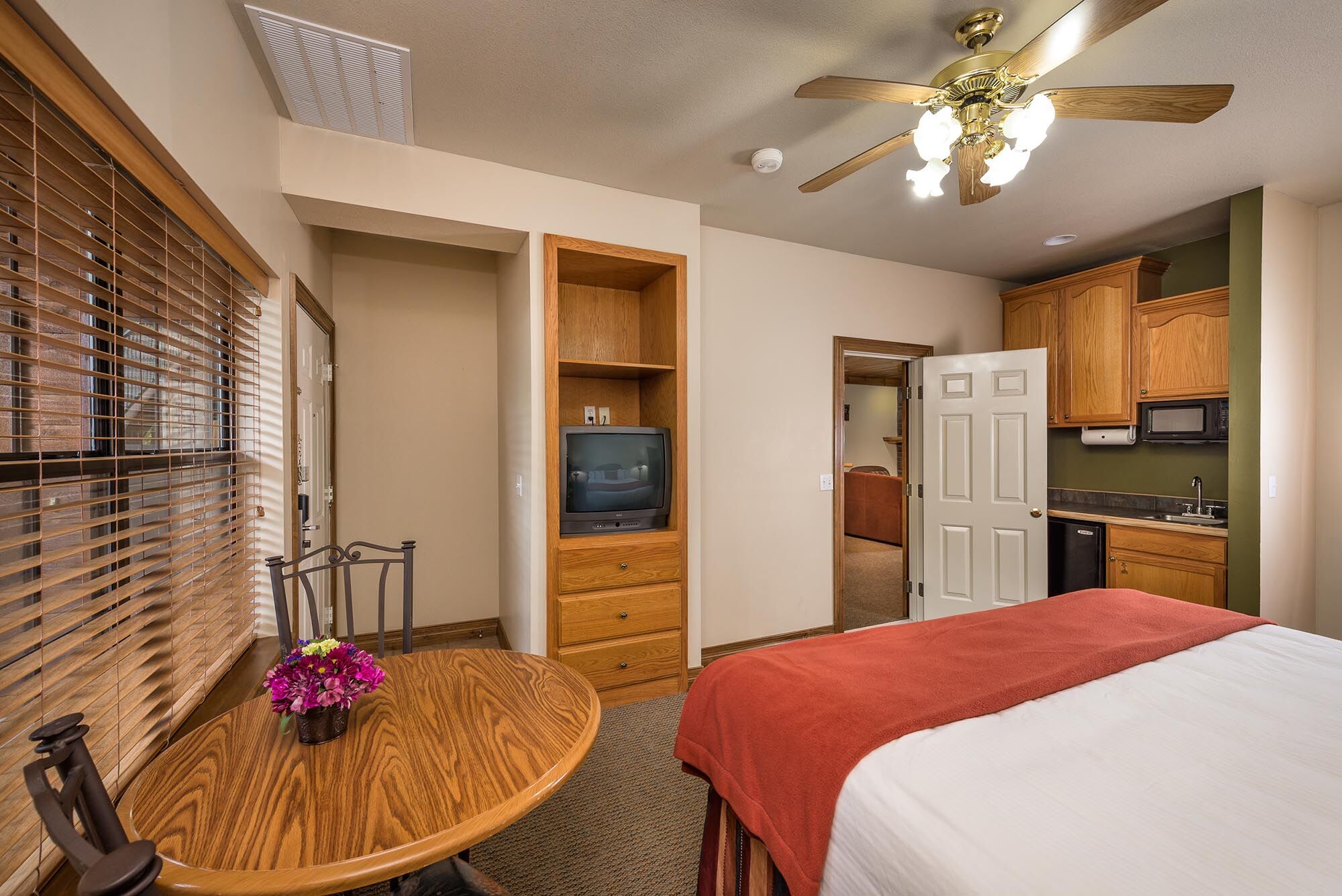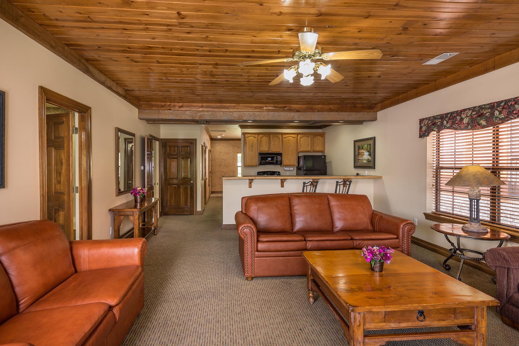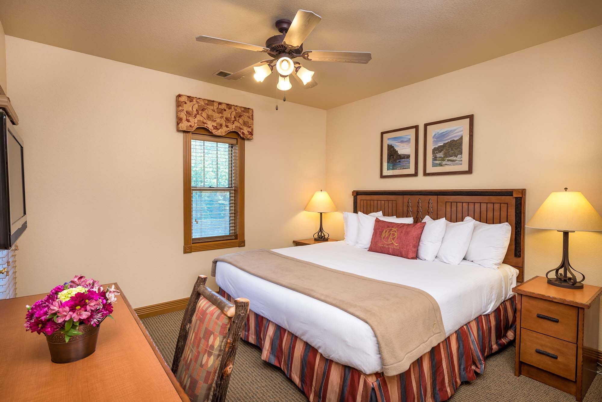 Located on 145 beautiful wooded acres, Westgate Branson Woods Resort features all the amenities you expect from a full-service resort. Guests enjoy two outdoor pools, an indoor pool, exercise facility, private hiking trails, shuffleboard courts, horseshoe pits, sand volleyball court, lighted playground, campfire area, clubhouse, bike rentals, free on-site entertainment, concierge, shuttle service and breakfast buffet. Meeting facilities are also available. Our comfortable one- and two-bedroom suites feature fully equipped kitchens, dining rooms, spacious living rooms with fireplaces and Jacuzzi whirlpools.