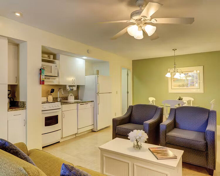 Accommodations range from cozy studios (some with lofts) to spacious one- and two-bedroom villas and townhomes. Each unit comes well equipped with a full kitchen, comfortable living and dining areas, cable TV, and private patios or balconies. Select layouts offer extra space with lofts, making them ideal for families or groups. Washer and dryer facilities are also available on property for added convenience.