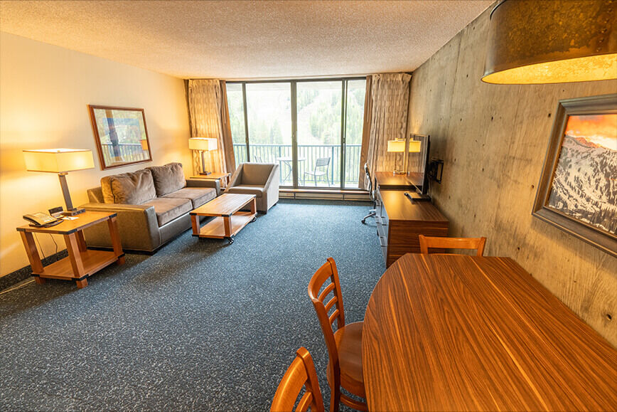 Accommodations at Iron Blosam range from cozy studios to spacious loft suites, with many units featuring full kitchens, fireplaces, private balconies with mountain views, and flexible sleeping arrangements for families or groups. Whether you’re enjoying a studio with a kitchenette or a multi-level suite with room for eight, each layout is designed for comfort and convenience amid Snowbird’s iconic alpine setting. In-unit amenities such as cable TV and DVD players add a home-away-from-home feel, while on-site coin laundry and a business center make longer stays easy.