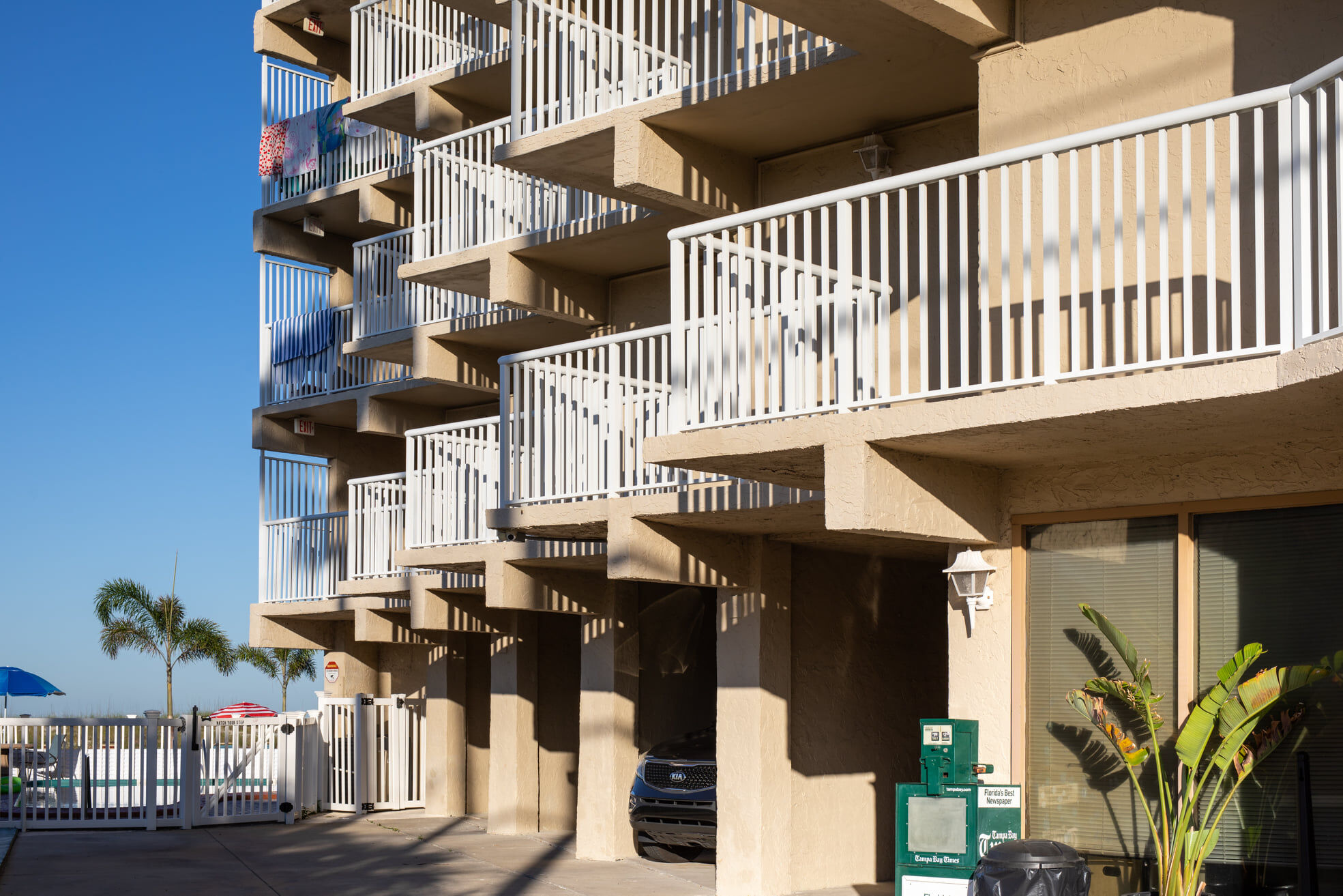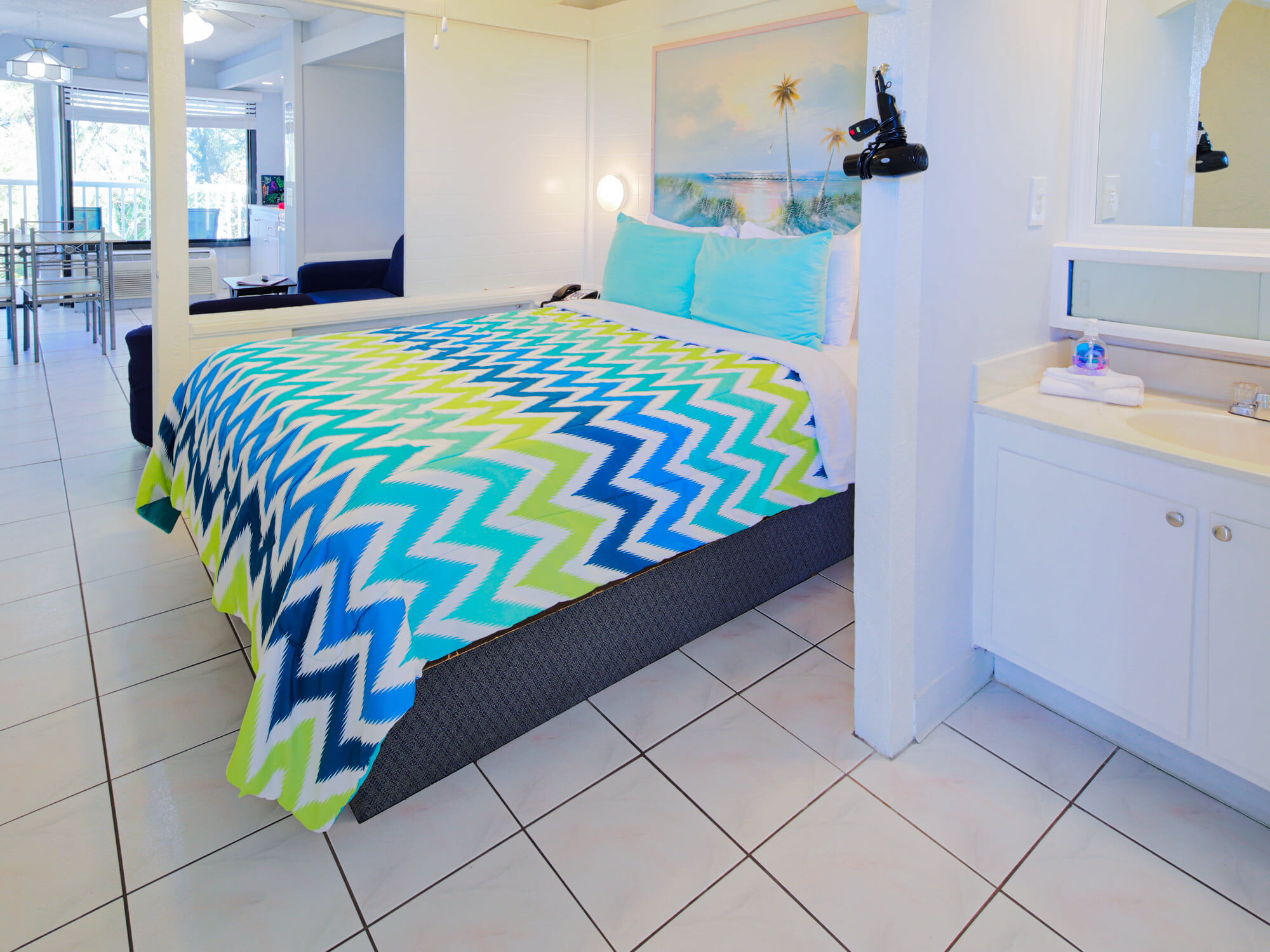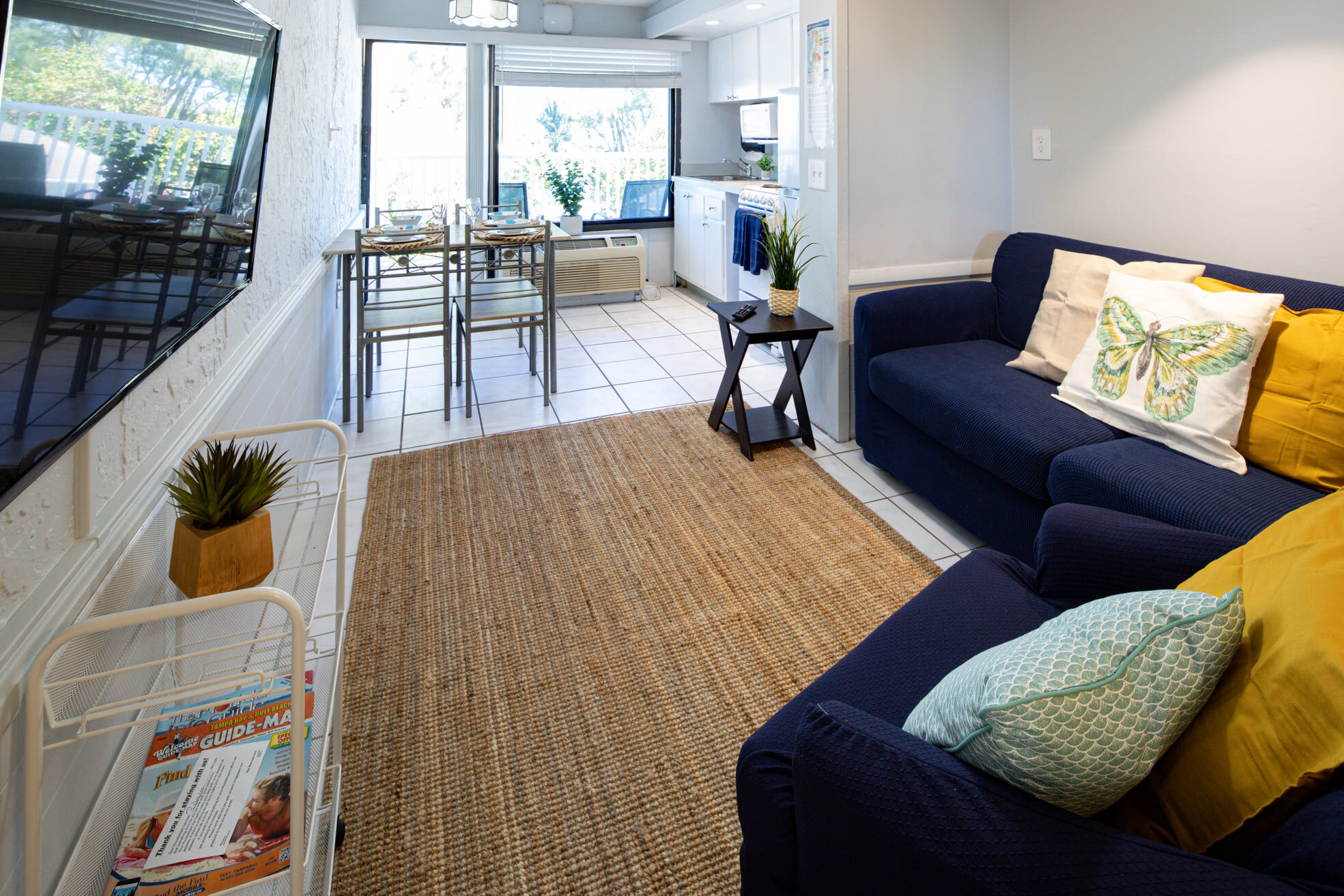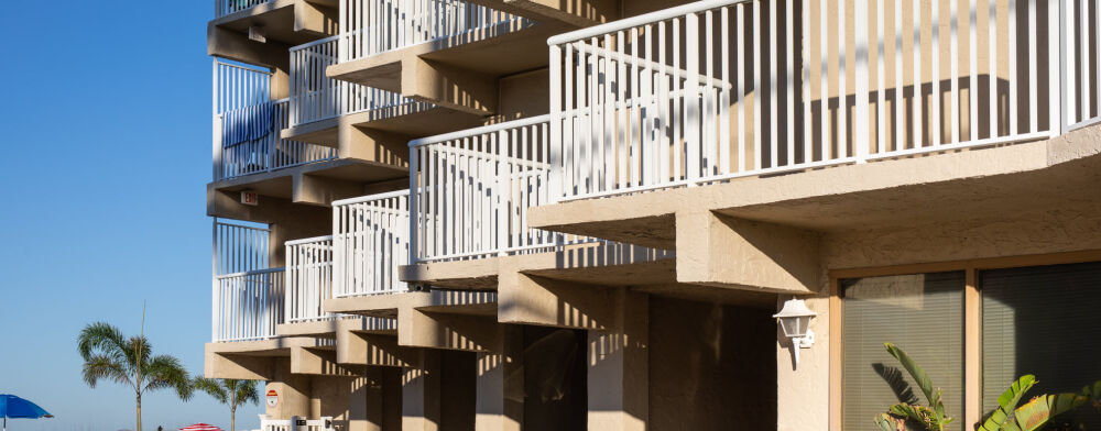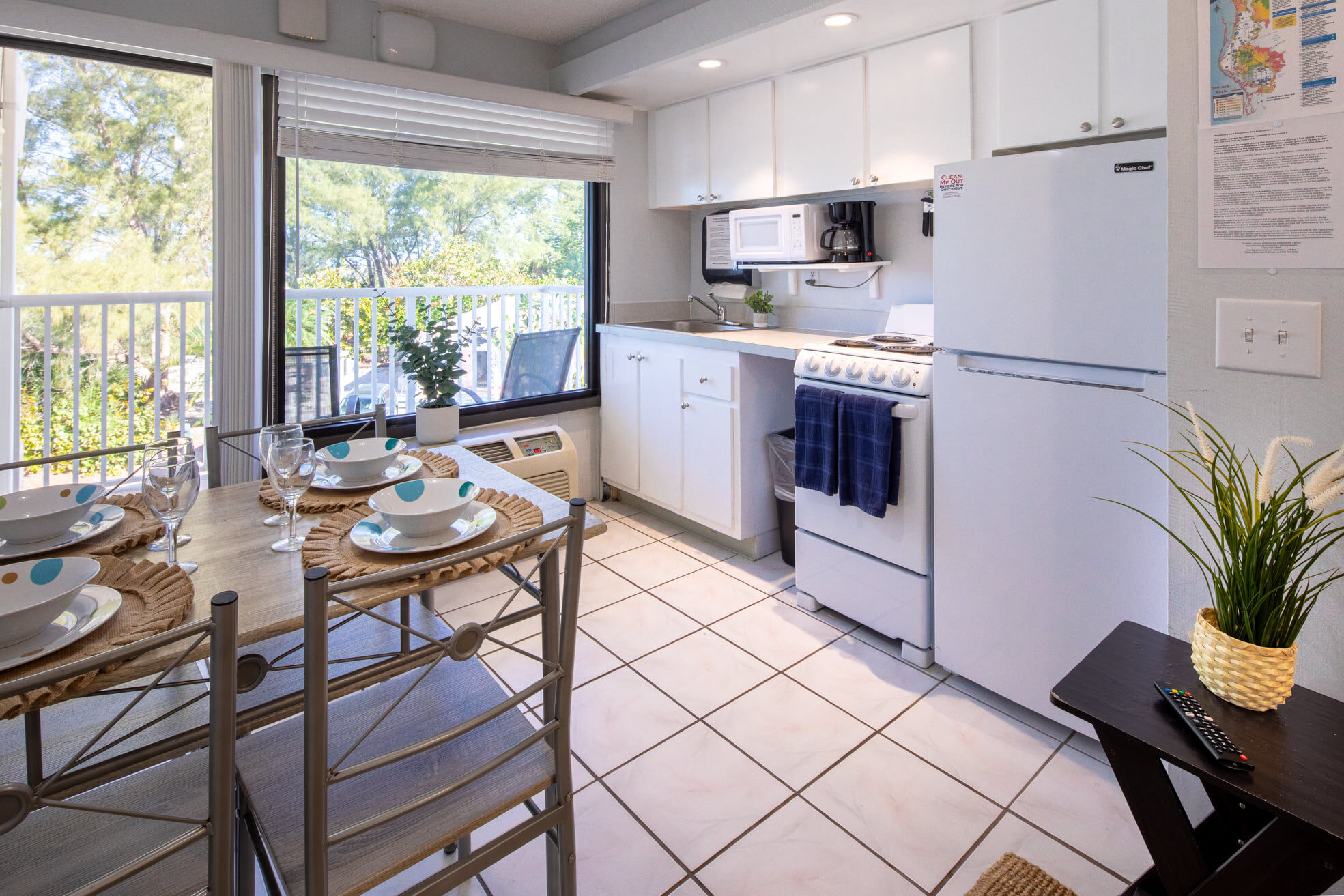 Each nautically-themed studio efficiency has a bridge commanding a view of the Gulf of Mexico and Treasure Island Beach, a fully-equipped galley, a queen-sized berth in the bedroom, and double sofa bed in salon. Amenities: heated pool, picnic area, barbecues, and clubhouse. Close by are boating, fishing and snorkeling.