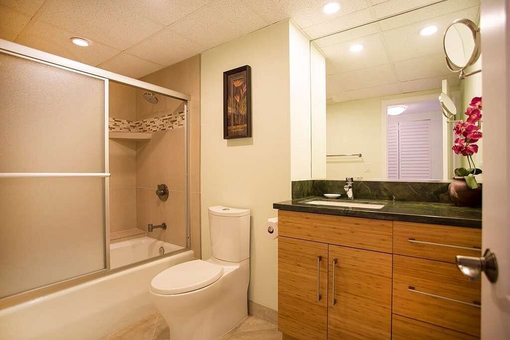 All of Aston Kaanapali Shores' studio, one-bedroom and two-bedroom accommodations are air-conditioned and feature Wi-Fi Internet access, cable television and daily maid service. All units offer private lanai with views of tropical gardens and the ocean, plus full kitchens complete with dishwashers for added "at home" convenience. Upscale decor includes marble countertops in kitchens and tropical touches such as rattan furnishings and Hawaiian artwork.