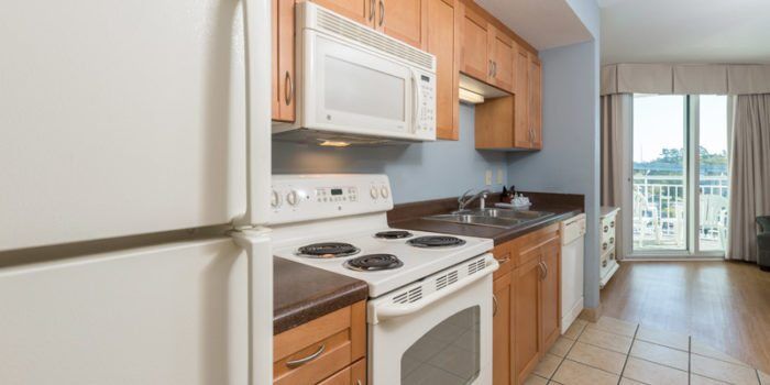 The Harbourgate also features an outdoor pool, pool deck, and an outdoor hot tub on the grounds. All rooms feature a living area, full kitchen, and private balcony. And a steakhouse & seafood restaurant is also on the grounds for when you don’t feel like cooking.