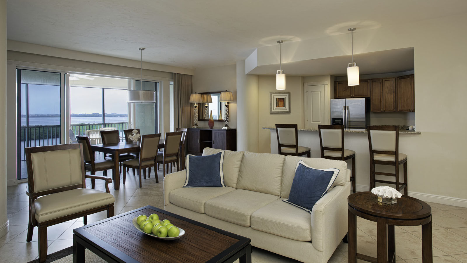 One, two and three-bedroom units are available, each decorated in a timeless Floridian style with luxurious touches. Westin Heavenly Beds decked out with ultra-plush linens ensure that turning in for the night is nothing short of a dream come true. Open-plan living and dining rooms feel spacious and inviting, and an ultra-modern kitchen (equipped with granite countertops and stainless steel appliances) has everything you'll need. Flat-screen televisions and complimentary Wi-Fi are thoughtful touches. Each unit includes a private, screened-in lanai that lets you enjoy the beautiful Florida air without the bugs or rain.