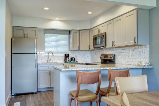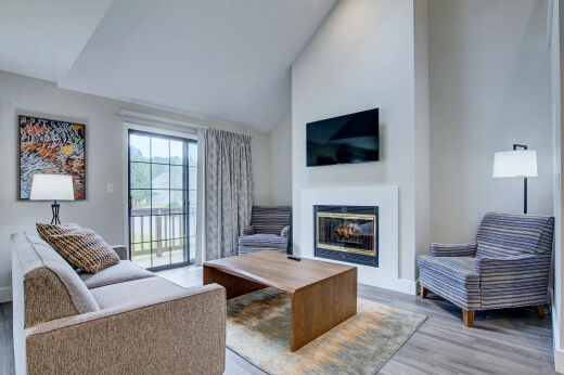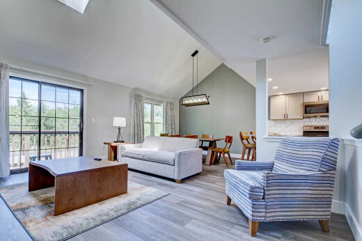 Relax in the fully equipped one bedroom villa with kitchen, living room, and dining area with views of the golf course, lakes and woodland. Note: all units at Pocono Mountain Villas have interior and exterior stairs; therefore, wheelchairs and other mobility assistance devices cannot be accommodated.