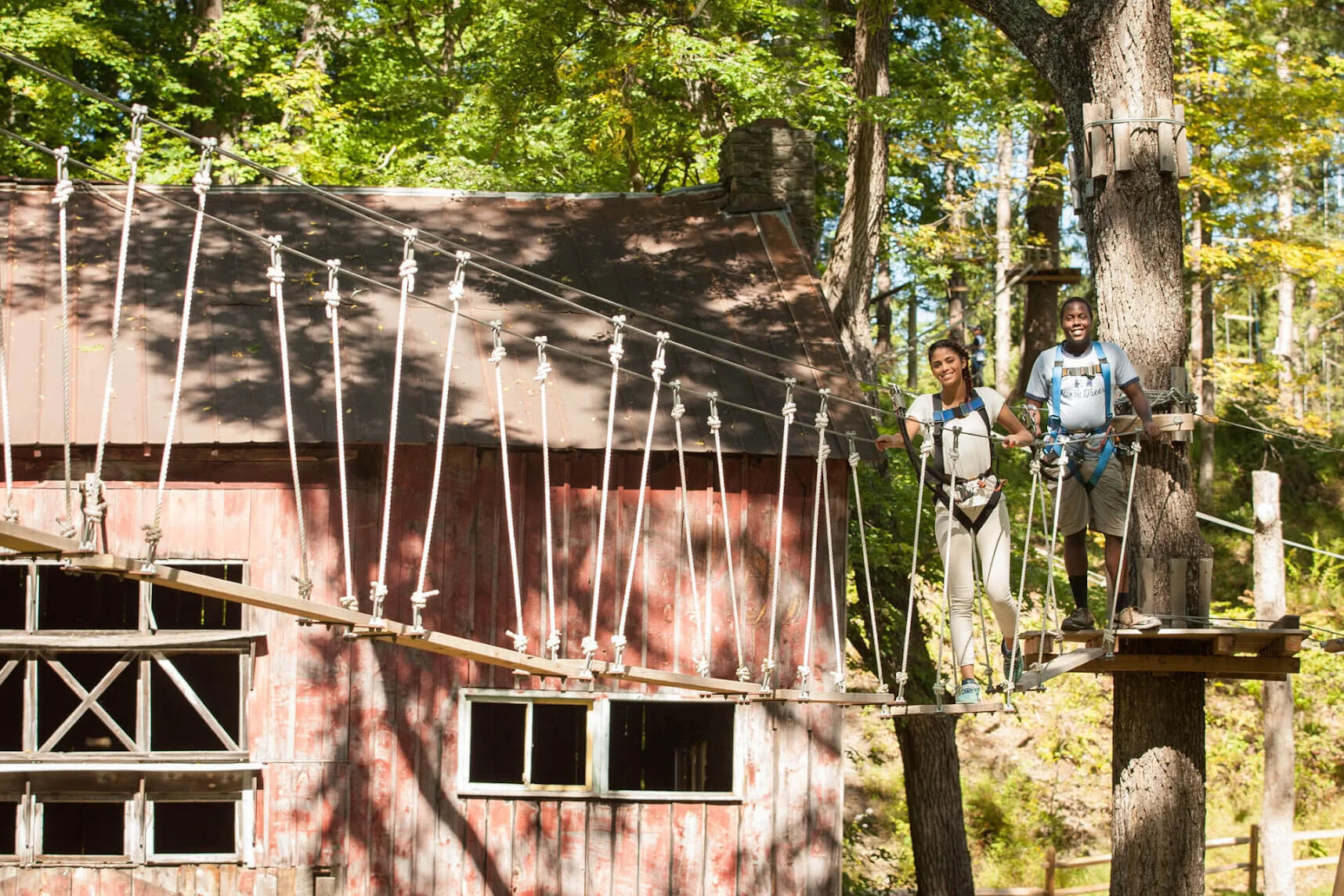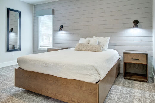 One-bedroom premium tree top units have a queen bed in the bedroom and a sofa sleeper in the living room. The units also have a full kitchen.