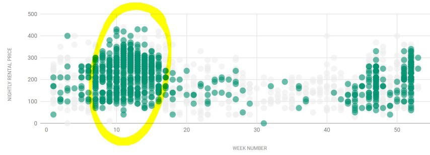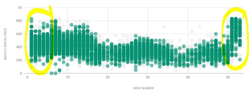 Here is a different spike — around week 10, which falls in March when temperatures in the area are ideal. This also happens to be during one of the world's biggest tennis tournaments, hosted at the resort. It pays to do your research...